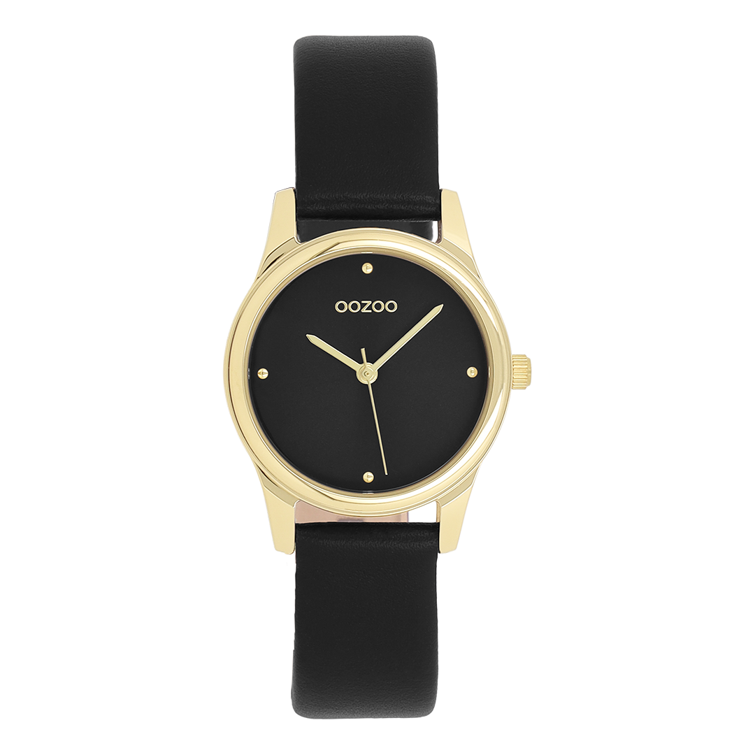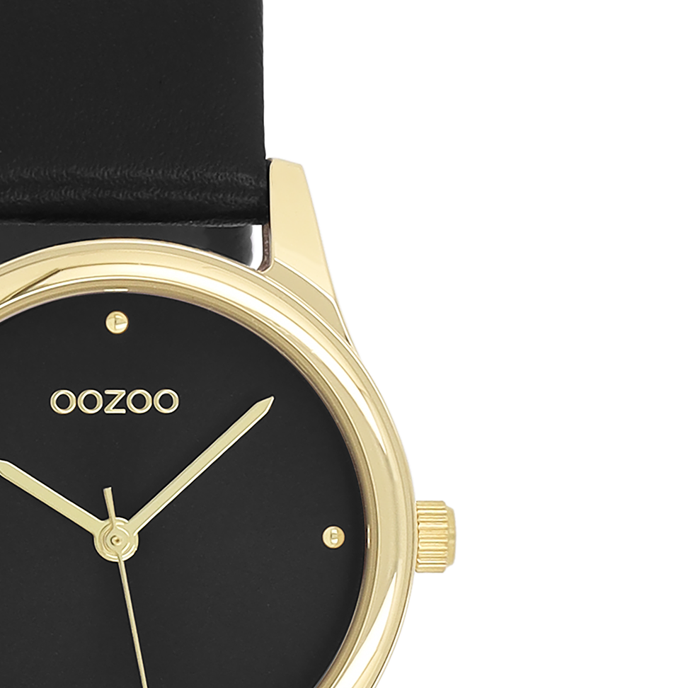 Gold coloured OOZOO watch with black leather strap - C11629