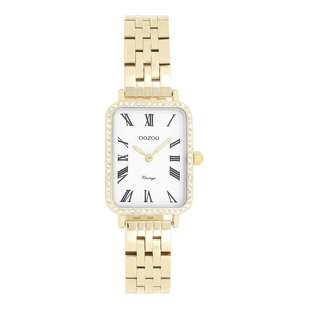 The classic look stays key in this trendy series and therefore, this rectangle OOZOO vintage design with a playful wink is the season must-have! This ladies watch is the perfect combination of fashion and comfort with its 24x28 mm gold coloured metal watch case and white dial. The shiny gold coloured stainless steel bracelet makes this watch a trendy accessory, which you can wear every day. The dial has black Roman numerals digits and gold coloured hands. The C20414 adds the sparkle to your outfit. The mineral glass lays in a mm slim metal watch case with IP-plating. This design has a stainless steel backplate and is nickel safe. This watch has a 2ATM Japanese movement and is covered by a 2 year warranty (see section 3 of our Refund, shipping & warranty policy).