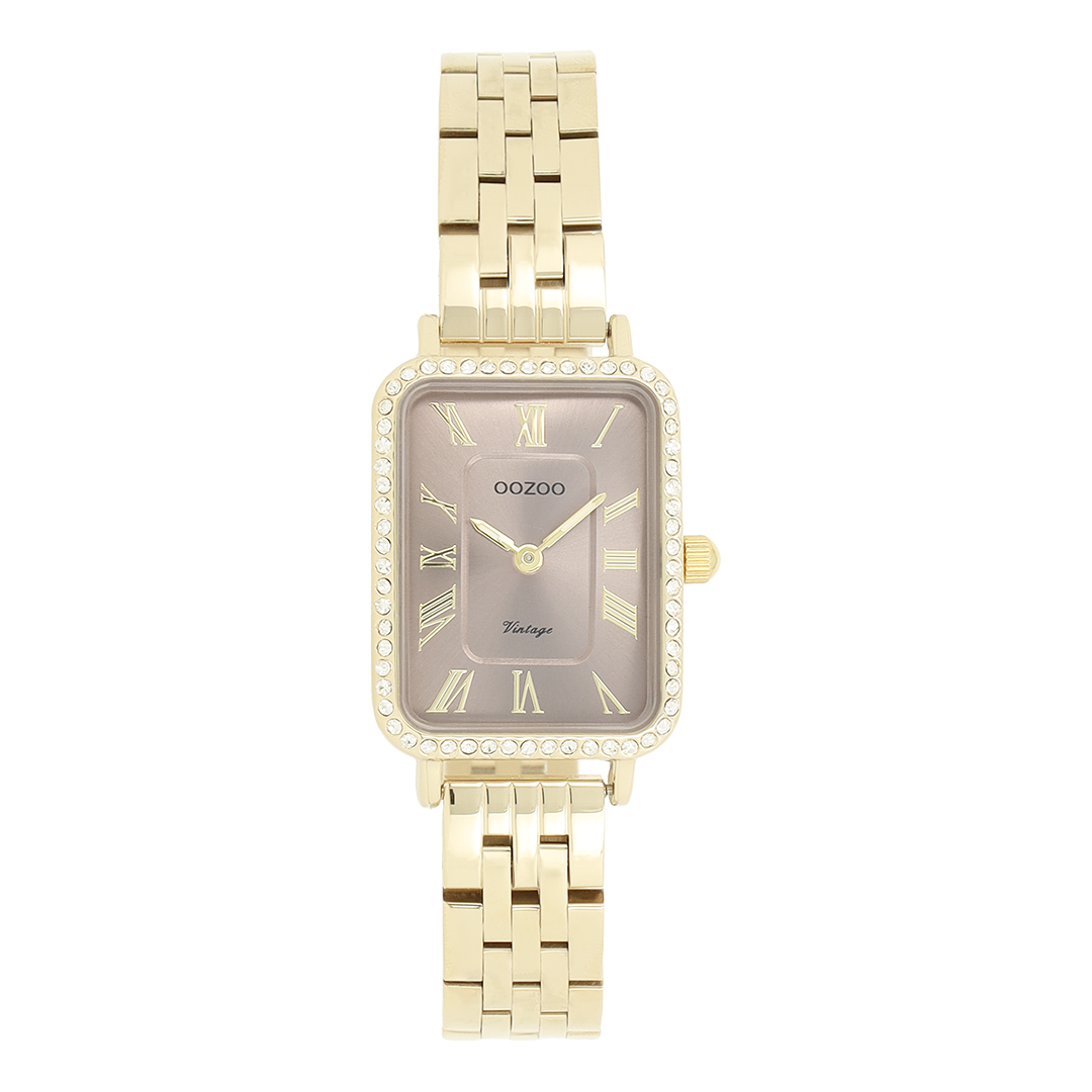 The classic look stays key in this trendy series and therefore, this rectangle OOZOO vintage design with a playful wink is the season must-have! This ladies watch is the perfect combination of fashion and comfort with its 24x28 mm gold coloured metal watch case and taupe sunray dial. The shiny gold coloured stainless steel bracelet makes this watch a trendy accessory, which you can wear every day. The dial has gold coloured Roman numerals digits and matching hands. The C20415 adds the sparkle to your outfit. The mineral glass lays in a mm slim metal watch case with IP-plating. This design has a stainless steel backplate and is nickel safe. This watch has a 2ATM Japanese movement and is covered by a 2 year warranty (see section 3 of our Refund, shipping & warranty policy).