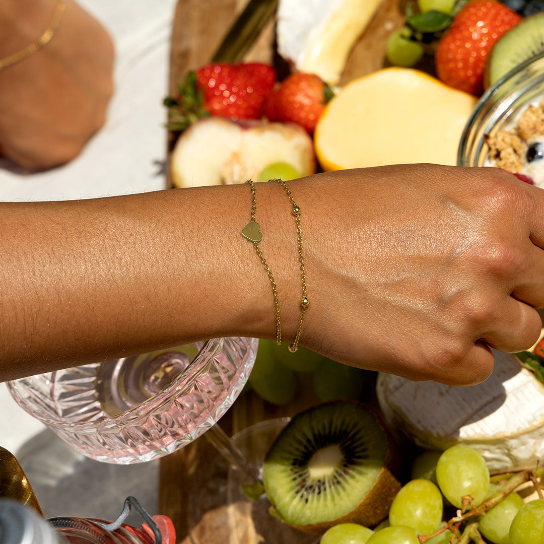 OOZOO Jewellery is a great addition to your personal accessories collection. This beautiful gold coloured bracelet with a heart is the perfect ladies accessory to complete your outfit. The bracelet is 17 cm long and is 3 cm adjustable. This amazing piece is made of strong stainless steel with gold coloured plated PVD and therefore long-lasting. This material ensures you that your jewellery retains its beautiful color. This product (SB-1040) is covered by a 3 months warranty (see section 3 of our Refund, shipping & warranty policy).