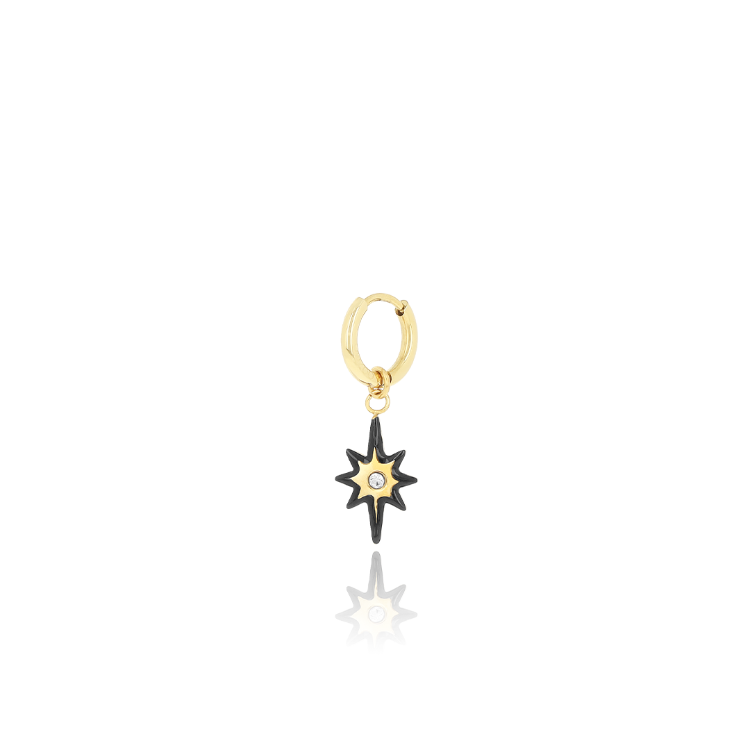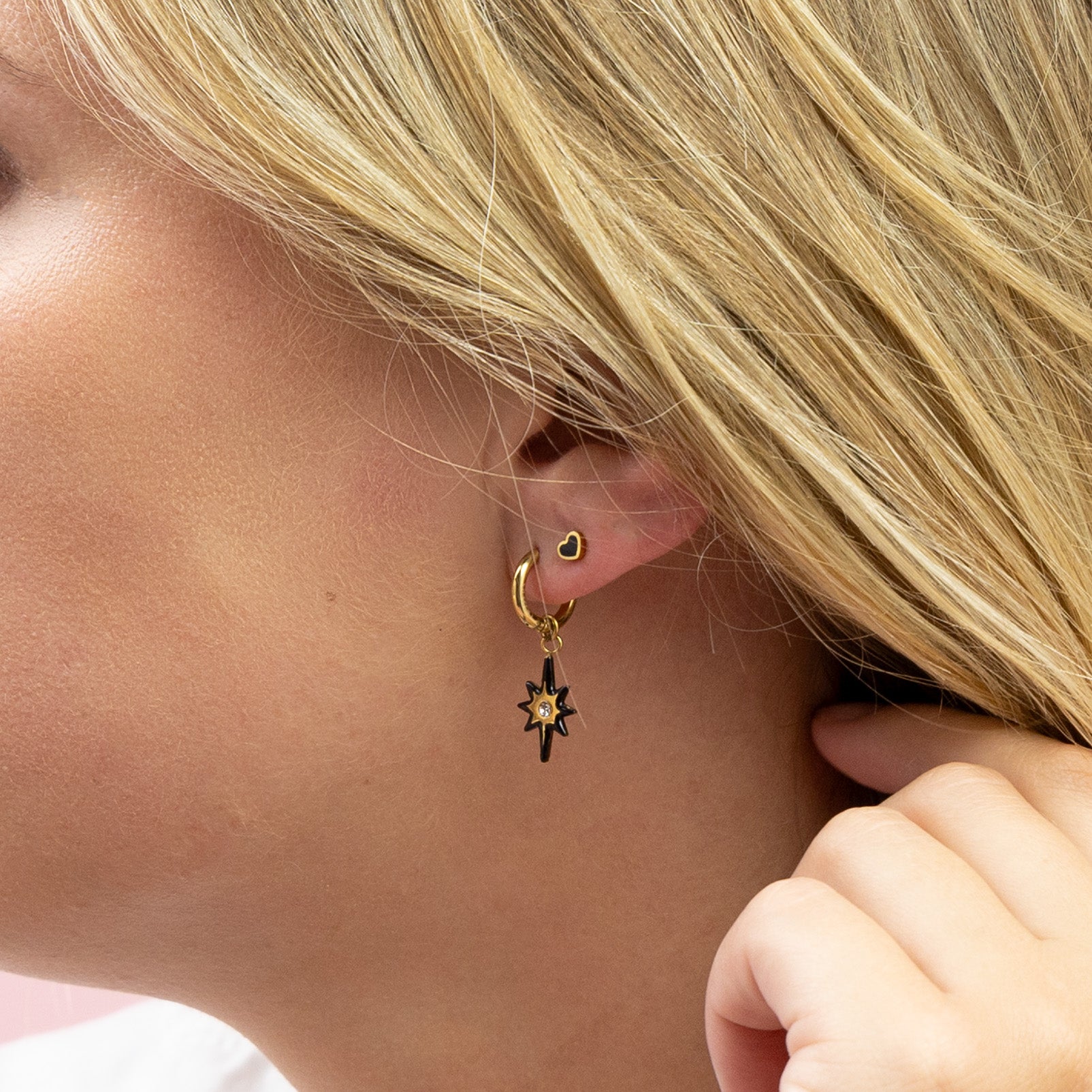 Introducing OOZOO Jewellery Earrings, the perfect accessories to add a touch of elegance and style to any outfit. This gold coloured hoop earring is designed specifically for those who appreciate sophisticated and timeless jewellery. Crafted with high-quality stainless steel, this 2cm hoop earring offers durability and long-lasting beauty. This hoop earring is adorned with black star charm (1cm), which adds a touch of whimsy and fun to the overall look. This product SE-3089 is covered by a 3 months warranty (see section 3 of our Refund, shipping & warranty policy).