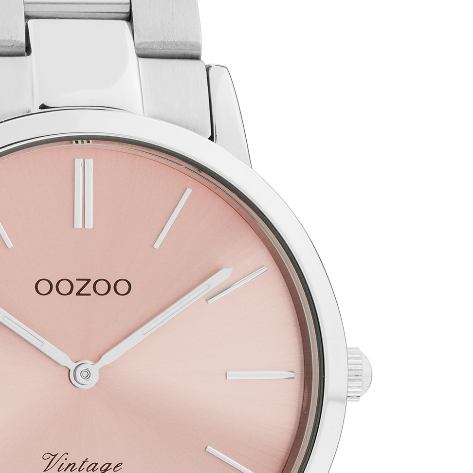 Sophistication and elegance are two elements of our beautiful OOZOO Vintage Classics. This classic round design with a contemporary twist is something for everyone. This unisex watch is the perfect combination of comfort and fashion with its 38 mm silver coloured metal watch case and pink with sunray dial. The matte/shiny silver coloured stainless steel bracelet makes this watch an all-time classic which you can wear with every occasion. The dial has silver coloured stripes digits and matching hands. The C20028 is a must have for your every-wear. The mineral glass lays in a 6,9 mm slim metal watch case with IP-plating. This design has a stainless steel backplate and is nickel safe. This watch has a 2 Japanese movement and is covered by a 2 year warranty (see section 3 of our Refund, shipping & warranty policy).