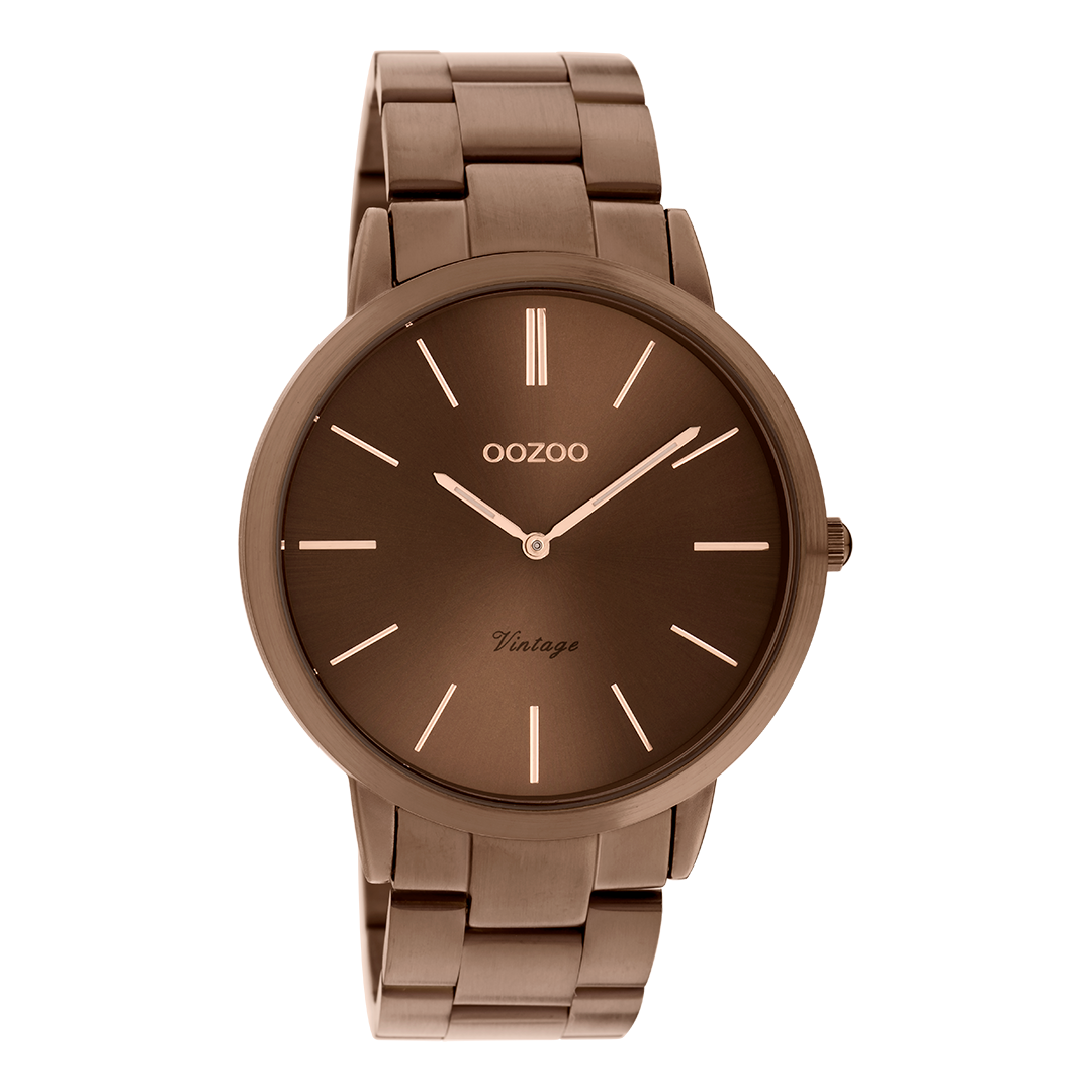Sophistication and elegance are two elements of our beautiful OOZOO Vintage Classics. This classic round design with a contemporary twist is something for everyone. This unisex watch is the perfect combination of comfort and fashion with its 42 mm brown metal watch case and brown with sunray dial. The matte/shiny brown stainless steel bracelet makes this watch an all-time classic which you can wear with every occasion. The dial has rose coloured stripes digits and matching hands. The C20103 is a must have for your every-wear. The mineral glass lays in a 6,9 mm slim metal watch case with IP-plating. This design has a stainless steel backplate and is nickel safe. This watch has a 2ATM Japanese movement and is covered by a 2 year warranty (see section 3 of our Refund, shipping & warranty policy).