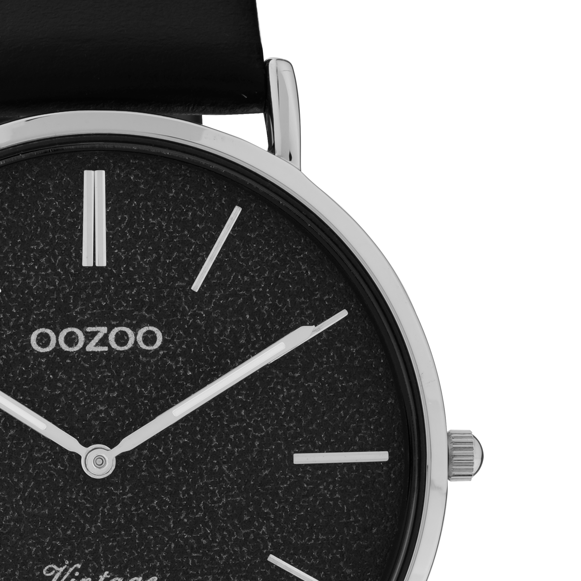The classic look stays key in this trendy series and therefore, this round OOZOO vintage design with a playful wink is the season must-have! This ladies watch is the perfect combination of fashion and comfort with its 40 mm silver coloured metal watch case and black with glitter dial. The black leather strap makes this watch a trendy accessory, which you can wear every day. The dial has silver coloured stripes digits and matching hands. The C20168 adds the sparkle to your outfit. The mineral glass lays in a 6,9 mm slim metal watch case with IP-plating. This design has a stainless steel backplate and is nickel safe. This watch has a 2ATM Japanese movement and is covered by a 2 year warranty (see section 3 of our Refund, shipping & warranty policy).