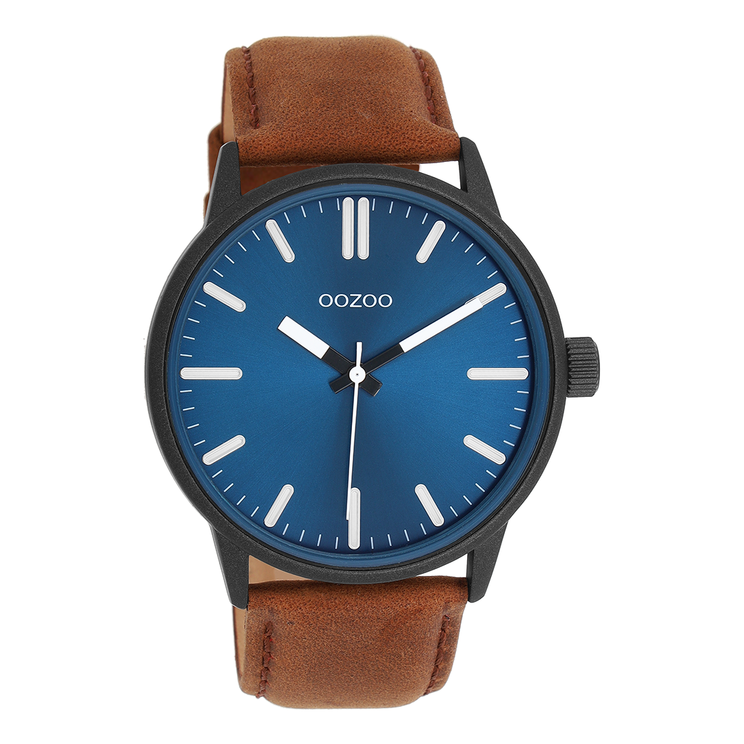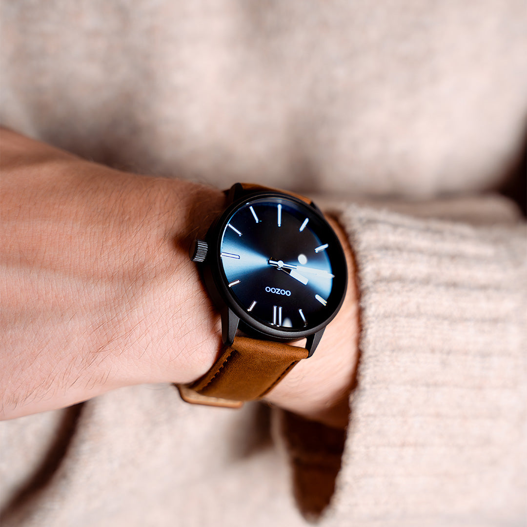 Black OOZOO watch with brown leather strap - C11401