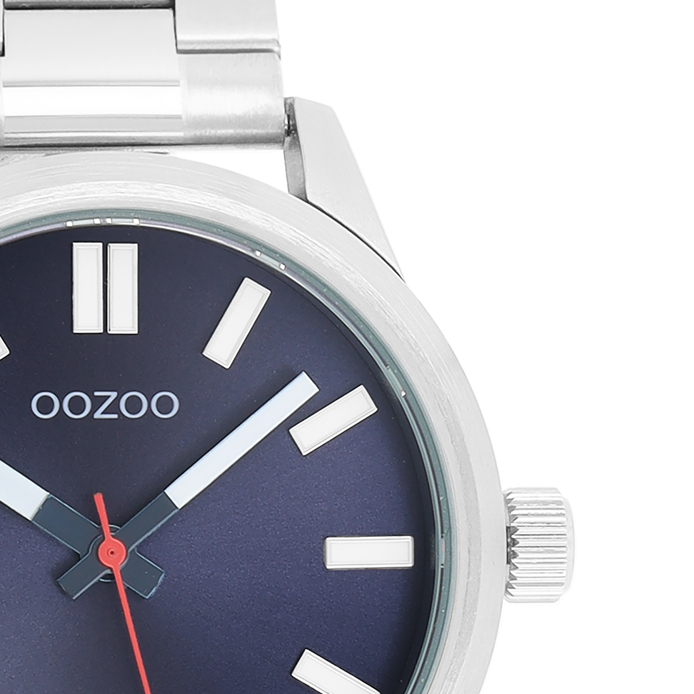 Stand out with this beautiful round gents design from the trendy OOZOO Timepieces collection. The C11615 has a silver coloured stainless steel bracelet and 40 mm silver coloured metal watch case. You are making quite the fashion statement with this blue sunray dial, glow in the dark stripes digits and blue/white/red hands. This essential watch for your wardrobe has a mineral glass, stainless steel backplate and is nickel safe. This watch has a 2ATM Japanese movement and is covered by a 2 year warranty (see section 3 of our Refund, shipping & warranty policy).