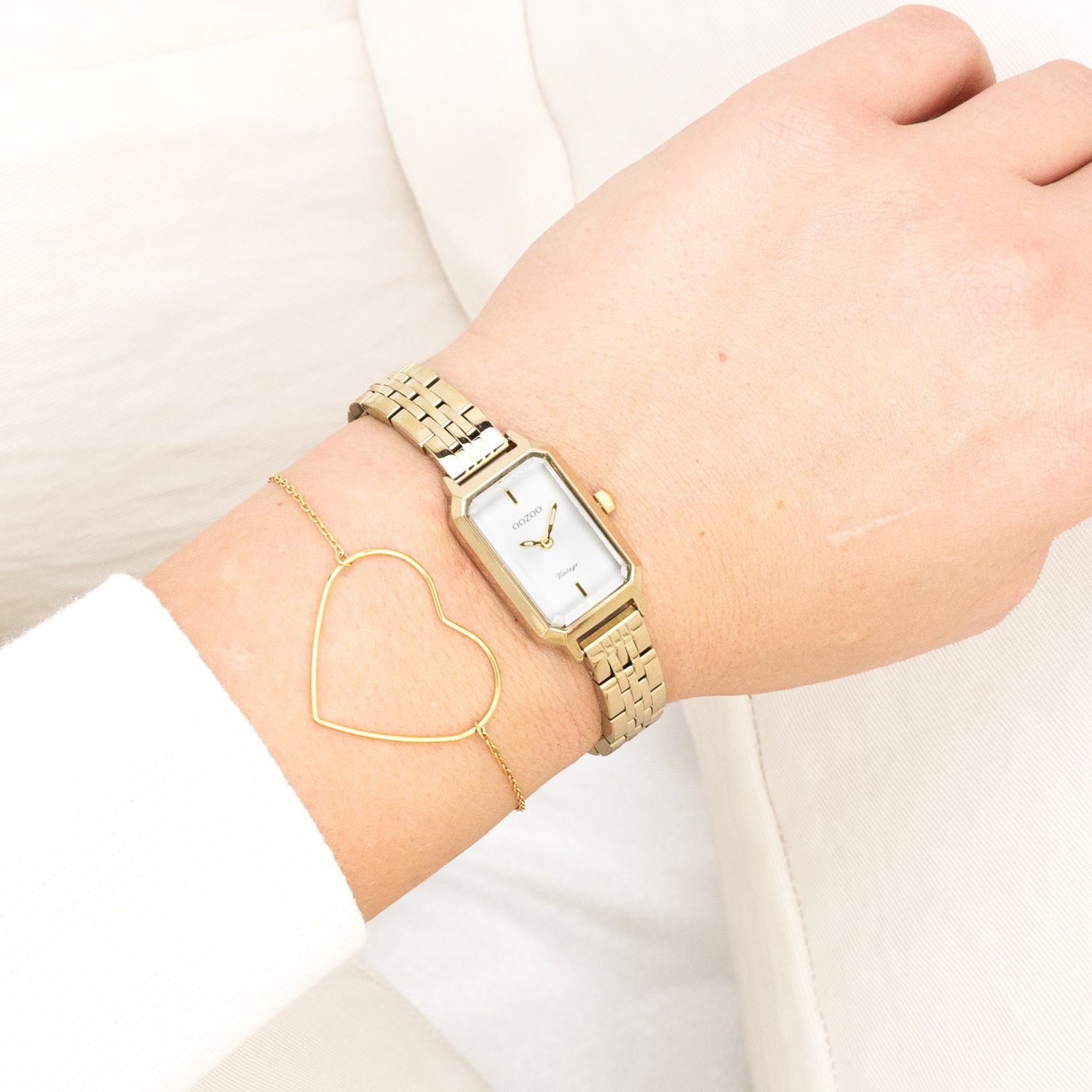 The classic look stays key in this trendy series and therefore, this rectangular OOZOO vintage design with a playful wink is the season must-have! This ladies watch is the perfect combination of fashion and comfort with its 22x19 mm gold coloured metal watch case and light grey circle pattern dial. The gold coloured stainless steel bracelet makes this watch a trendy accessory, which you can wear every day. The dial has gold coloured stripes digits and matching hands. The C20457 adds the sparkle to your outfit. The mineral glass lays in a 9,5 mm slim metal watch case with IP-plating. This design has a stainless steel backplate and is nickel safe. This watch has a 2ATM Japanese movement and is covered by a 2 year warranty (see section 3 of our Refund, shipping & warranty policy).