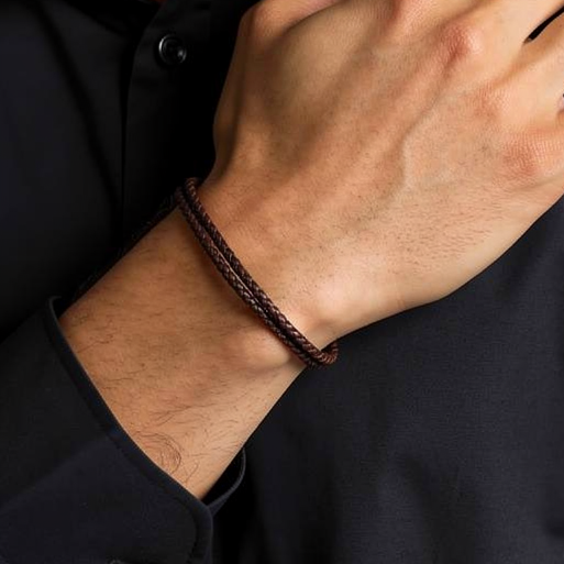 Brown braided leather bracelet