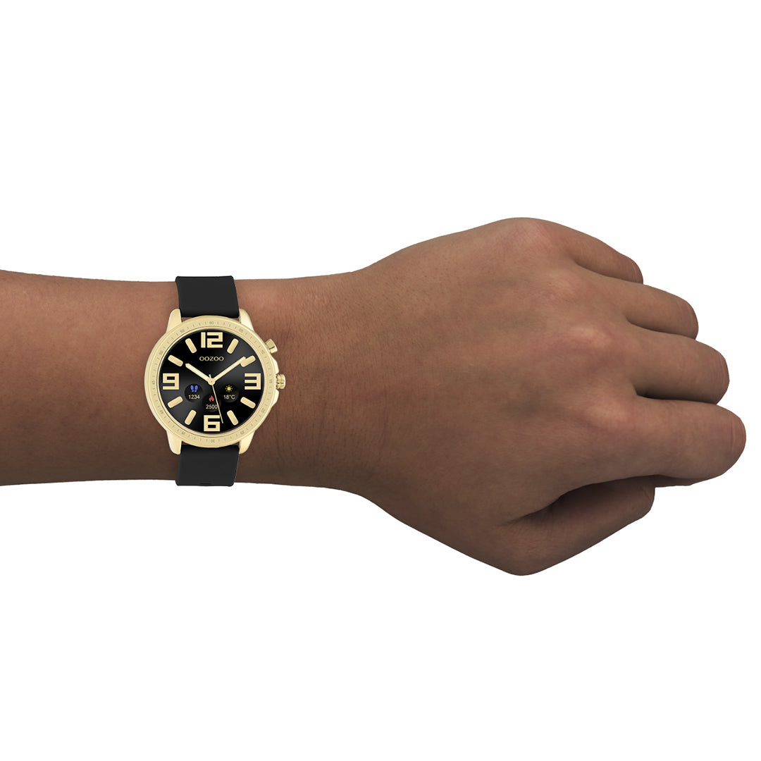 Gold coloured OOZOO smartwatch with black rubber strap - Q00301
