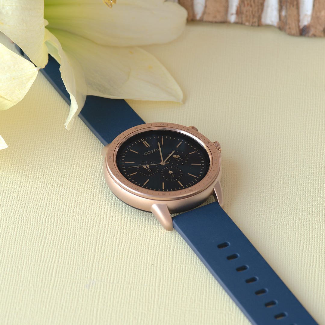 Rose gold coloured OOZOO smartwatch with dark blue rubber strap - Q00326