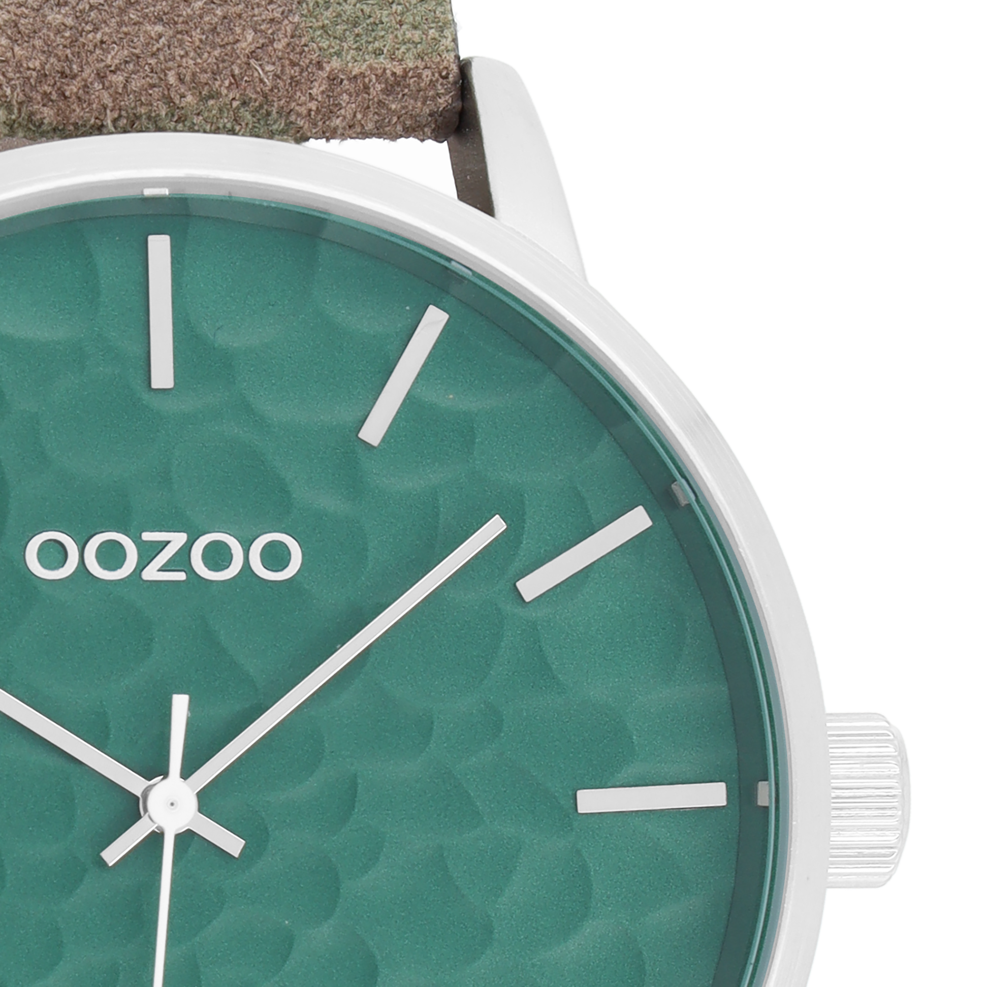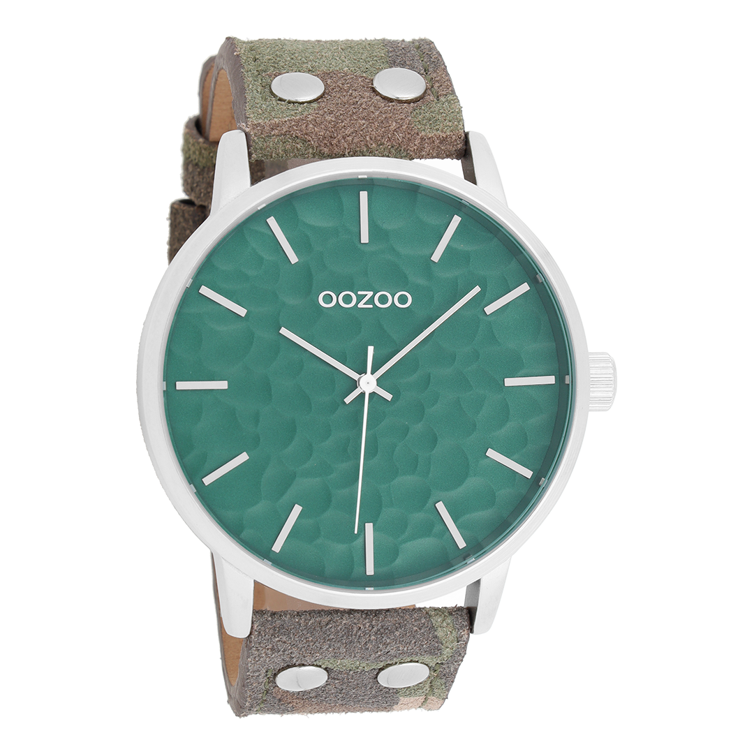 Silver coloured OOZOO watch with camouflage leather strap - C10460