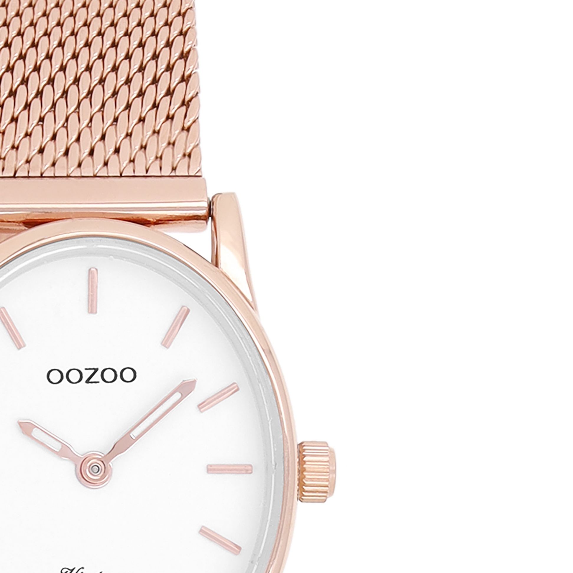 Rose gold coloured OOZOO watch with metal mesh bracelet - C10969