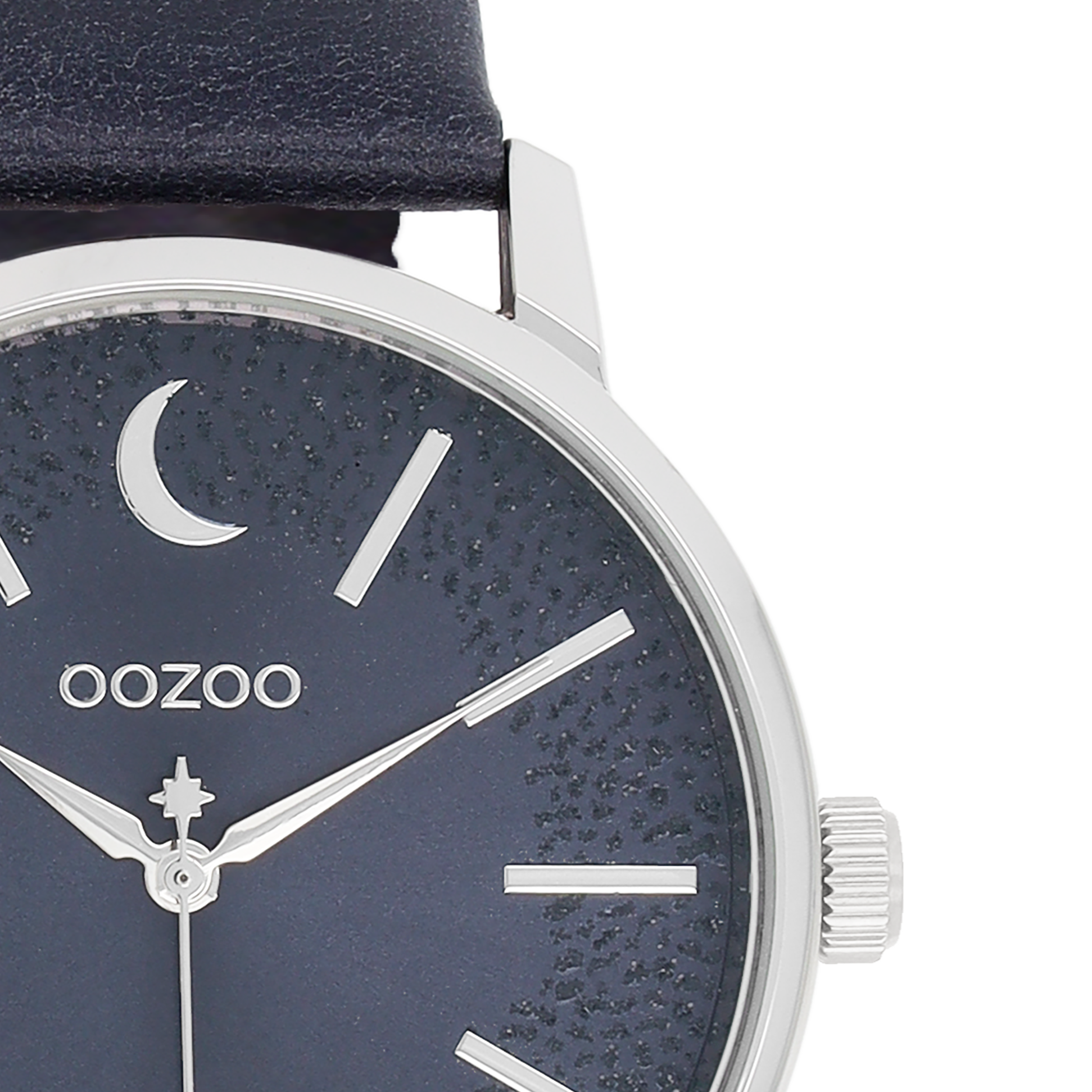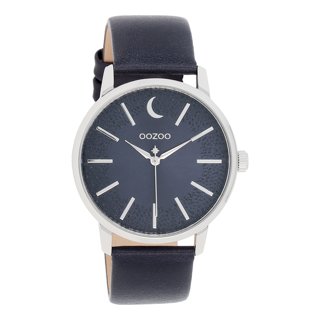 Silver coloured OOZOO watch with dark blue leather strap - C11043