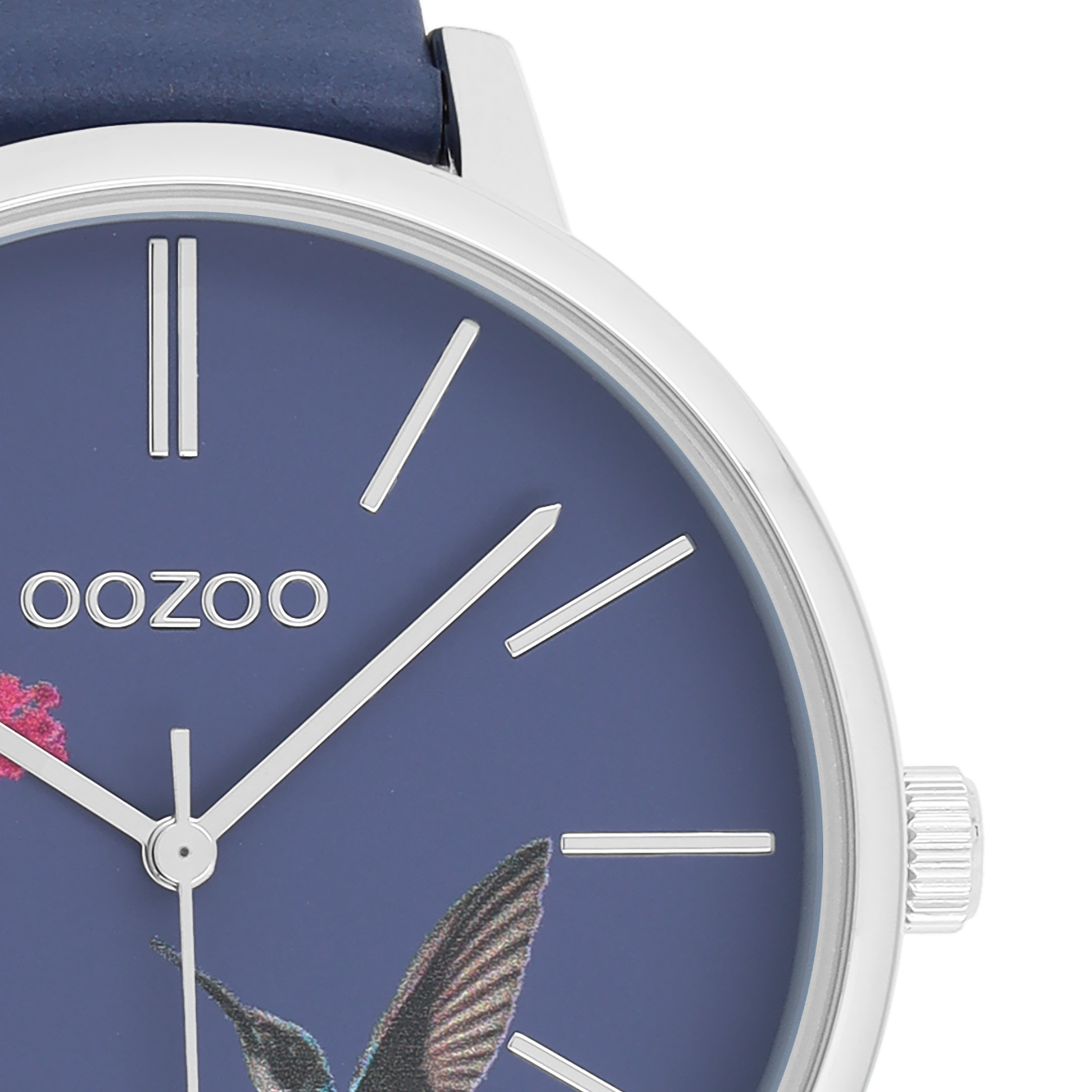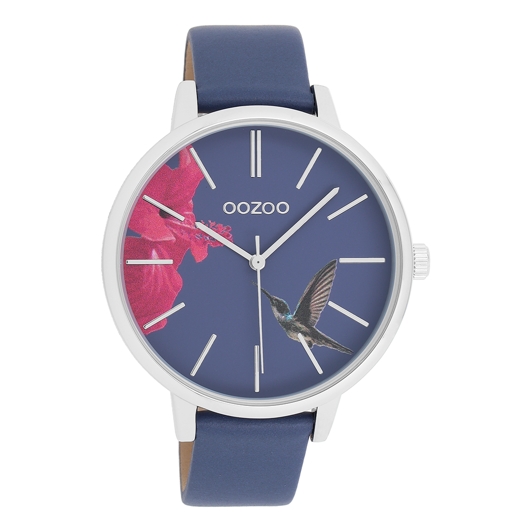 Silver coloured OOZOO watch with blue leather strap - C11069