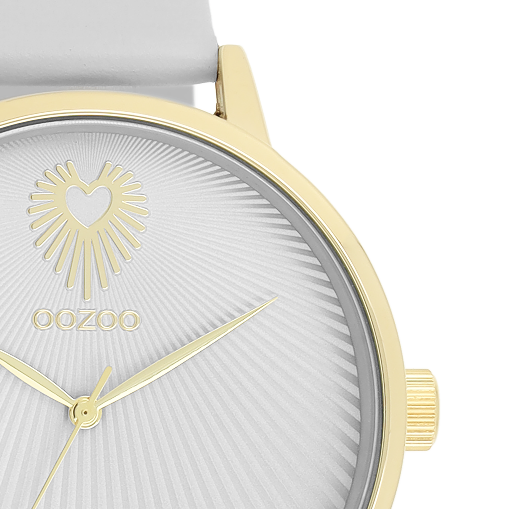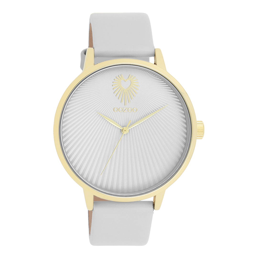 Gold coloured OOZOO watch with light grey leather strap - C11240