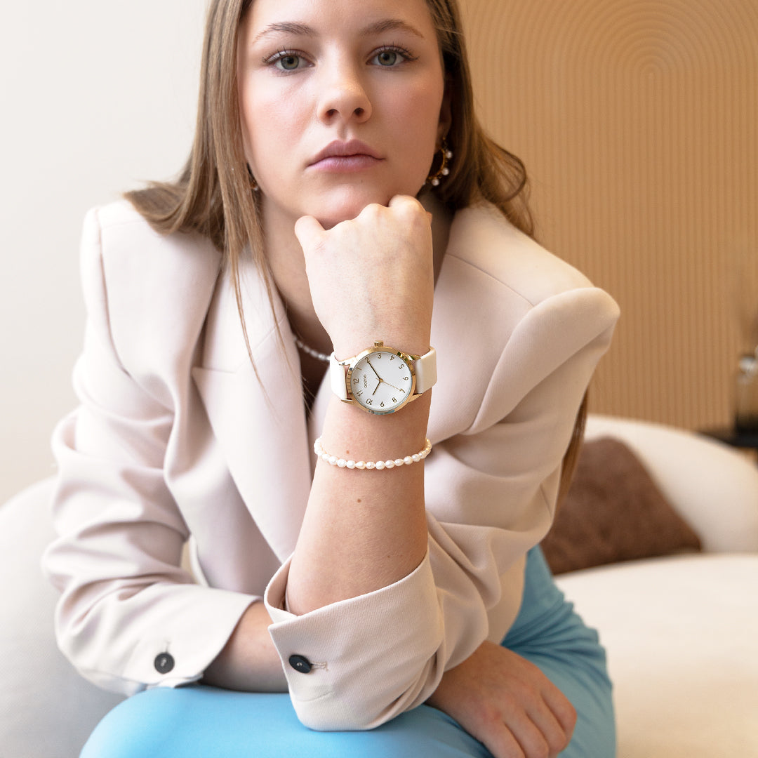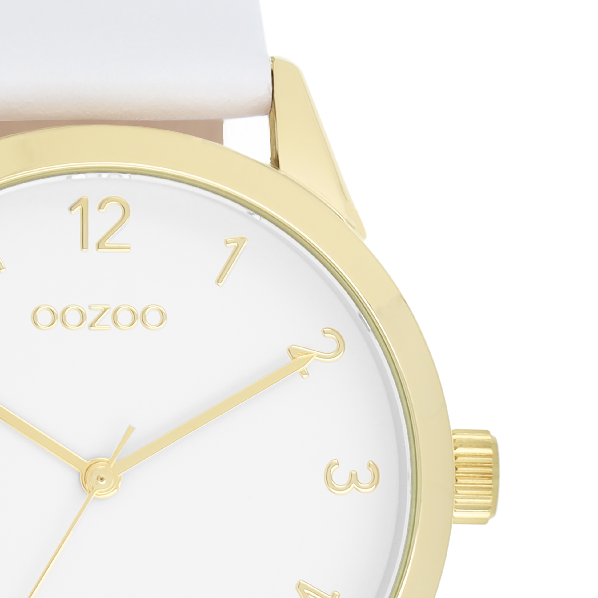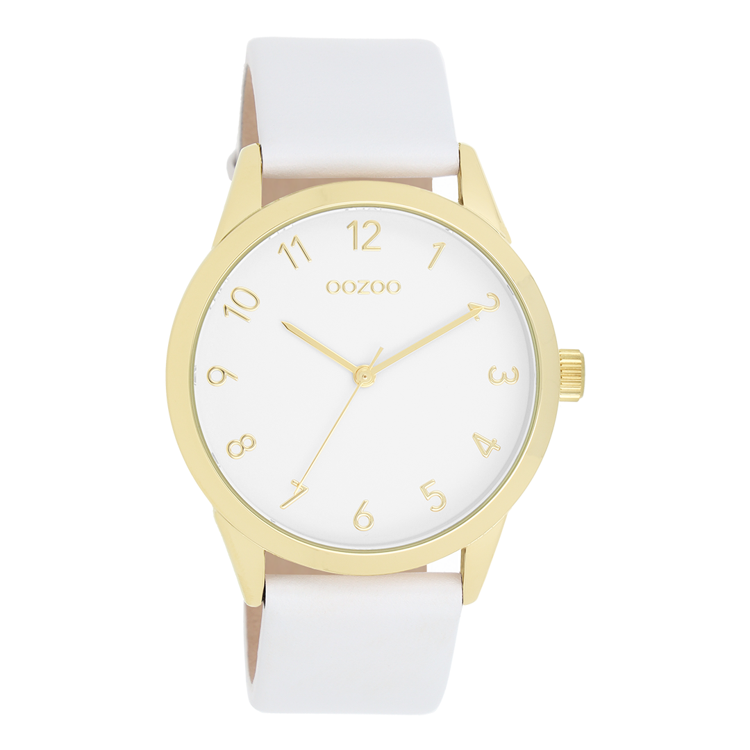 Stand out with this beautiful round ladies design from the trendy OOZOO Timepieces collection. The C11325 has a white leather strap and 40 mm gold coloured metal watch case. You are making quite the fashion statement with this blanc dial, gold coloured numbers digits and matching hands. This essential watch for your wardrobe has a mineral glass, stainless steel backplate and is nickel safe. This watch has a 2ATM Japanese movement and is covered by a 2 year warranty (see section 3 of our Refund, shipping & warranty policy).