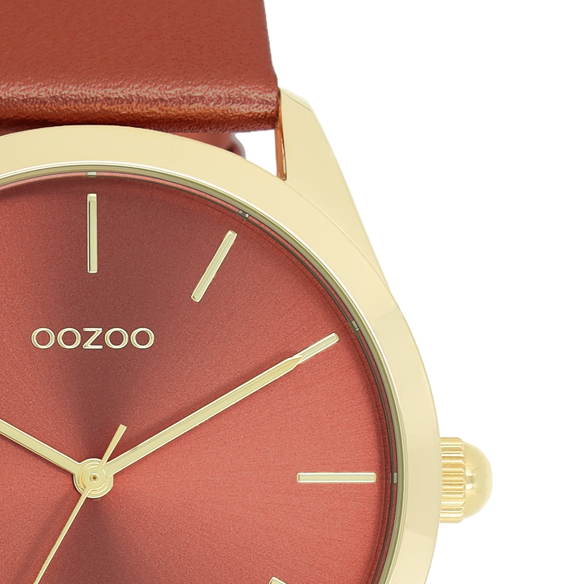 Gold coloured OOZOO watch with red leather strap - C11335