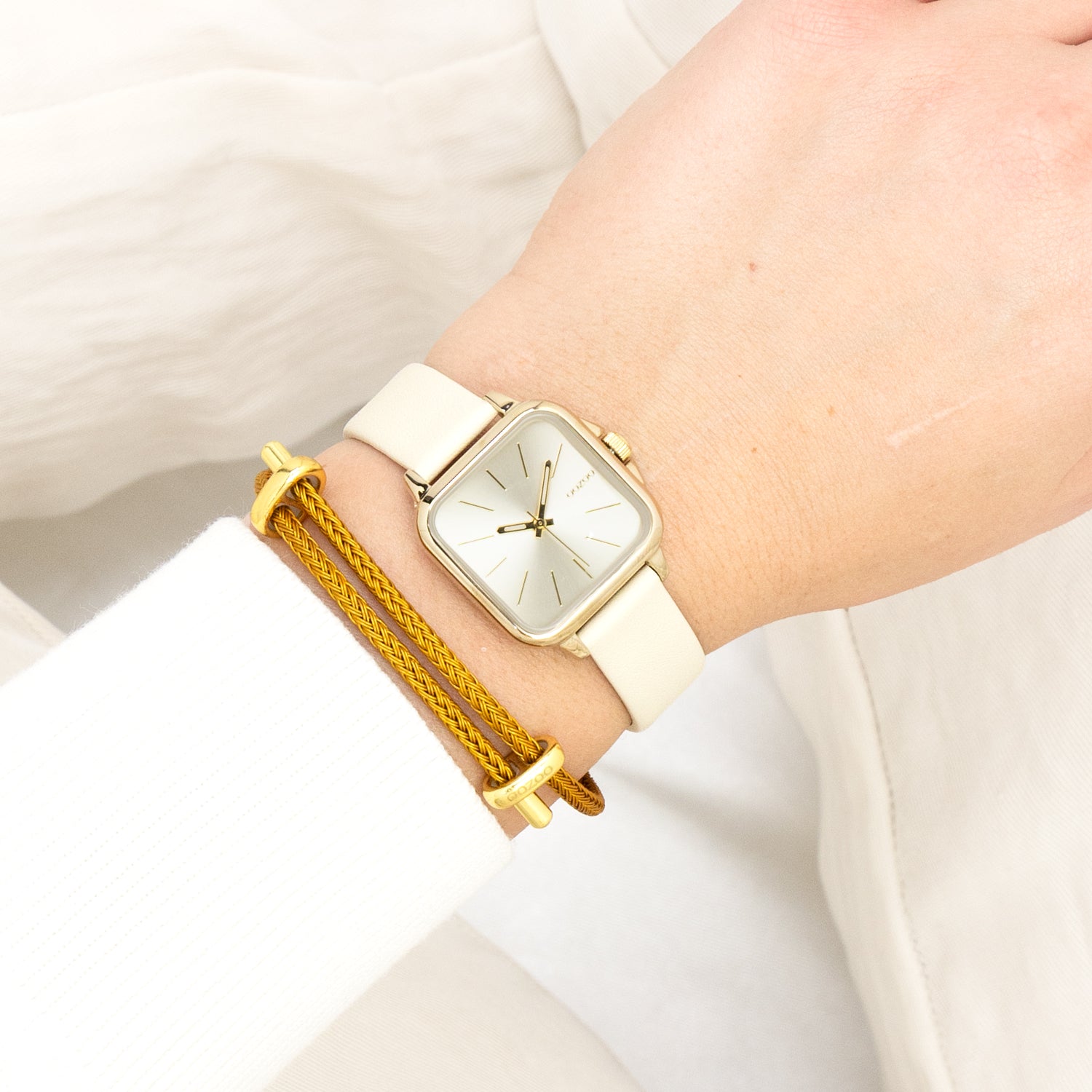 Gold coloured OOZOO watch with sand leather strap - C11666