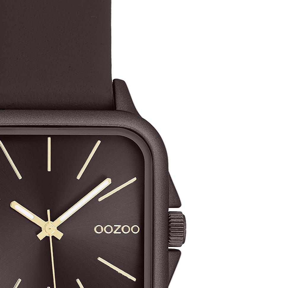 Stand out with this beautiful square ladies design from the trendy OOZOO Timepieces collection. The C11669 has a dark brown leather strap and 34x34 mm dark brown matte watch case. You are making quite the fashion statement with this dark brown sunray dial, gold coloured stripes digits and matching hands. This essential watch for your wardrobe has a mineral glass, stainless steel backplate and is nickel safe. This watch has a 2ATM Japanese movement and is covered by a 2 year warranty (see section 3 of our Refund, shipping & warranty policy).
