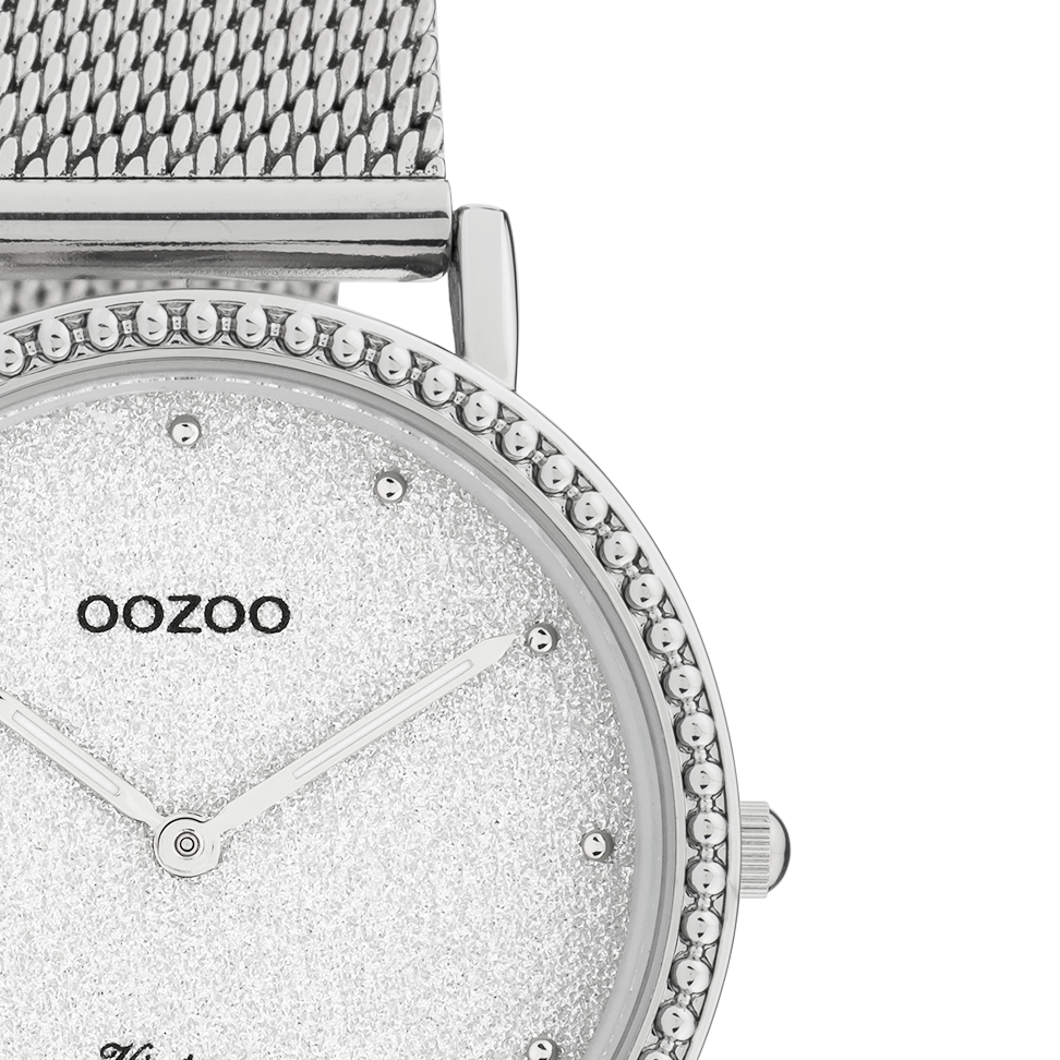 Silver coloured OOZOO watch with metal mesh bracelet - C20051