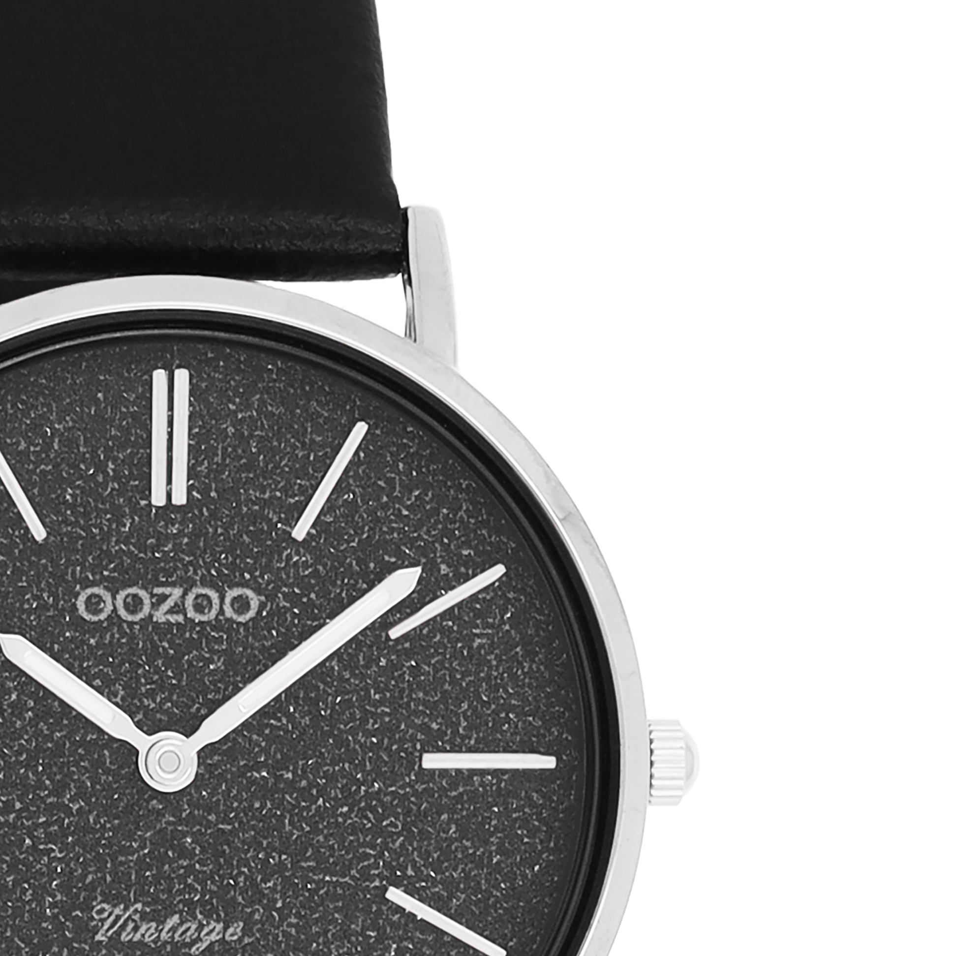 The classic look stays key in this trendy series and therefore, this round OOZOO vintage design with a playful wink is the season must-have! This ladies watch is the perfect combination of fashion and comfort with its 32 mm silver coloured metal watch case and black with glitter dial. The black leather strap makes this watch a trendy accessory, which you can wear every day. The dial has silver coloured stripes digits and matching hands. The C20208 adds the sparkle to your outfit. The mineral glass lays in a 6,9 mm slim metal watch case with IP-plating. This design has a stainless steel backplate and is nickel safe. This watch has a 2ATM Japanese movement and is covered by a 2 year warranty (see section 3 of our Refund, shipping & warranty policy).