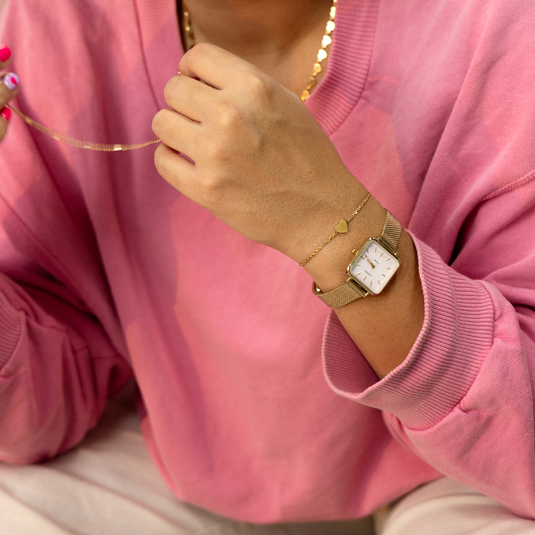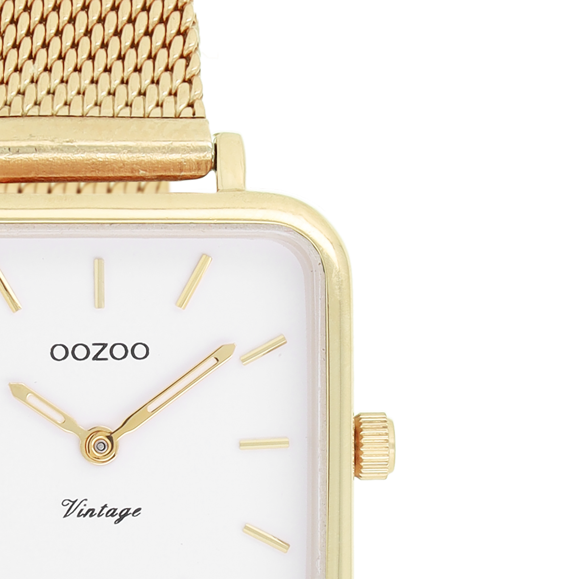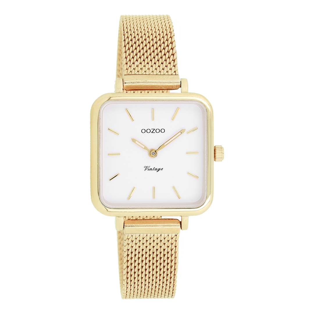 The classic look stays key in this trendy series and therefore, this square OOZOO vintage design with a playful wink is the season must-have! This ladies watch is the perfect combination of fashion and comfort with its 26mm x 26 mm gold coloured metal watch case and white dial. The shiny gold coloured metal mesh bracelet makes this watch a trendy accessory, which you can wear every day. The dial has gold coloured stripes digits and gold coloured hands. The C20263 adds the sparkle to your outfit. The mineral glass lays in a 6,9 mm slim metal watch case with IP-plating. This design has a stainless steel backplate and is nickel safe. This watch has a 2ATM Japanese movement and is covered by a 2 year warranty (see section 3 of our Refund, shipping & warranty policy).