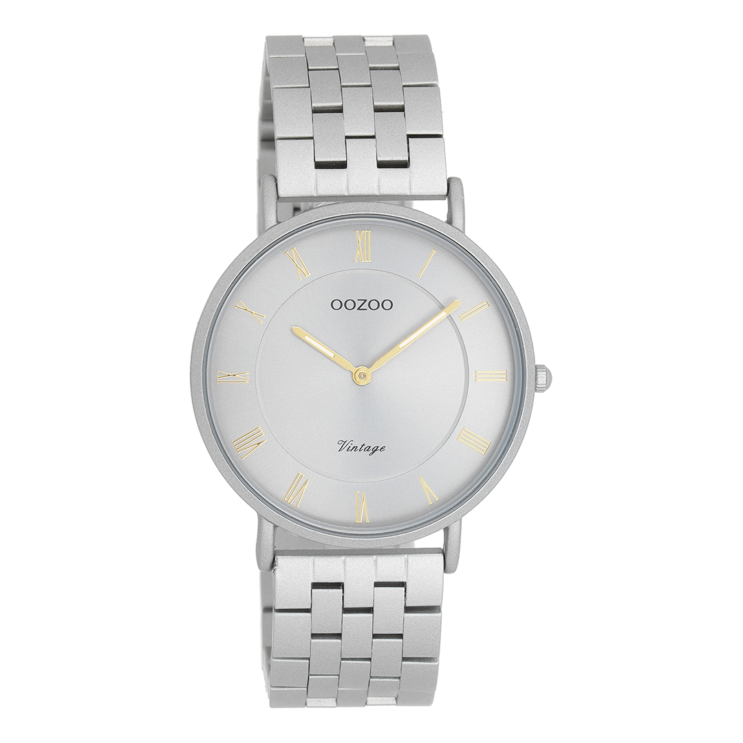 The classic look stays key in this trendy series and therefore, this round OOZOO vintage design with a playful wink is the season must-have! This unisex watch is the perfect combination of fashion and comfort with its 36 mm light grey matte watch case and light grey sunray dial. The matte light grey stainless steel bracelet makes this watch a trendy accessory, which you can wear every day. The dial has gold coloured Roman numerals digits and matching hands. The C20367 adds the sparkle to your outfit. The mineral glass lays in a 6,7 mm slim metal watch case with IP-plating. This design has a stainless steel backplate and is nickel safe. This watch has a 2ATM Japanese movement and is covered by a 2 year warranty (see section 3 of our Refund, shipping & warranty policy).