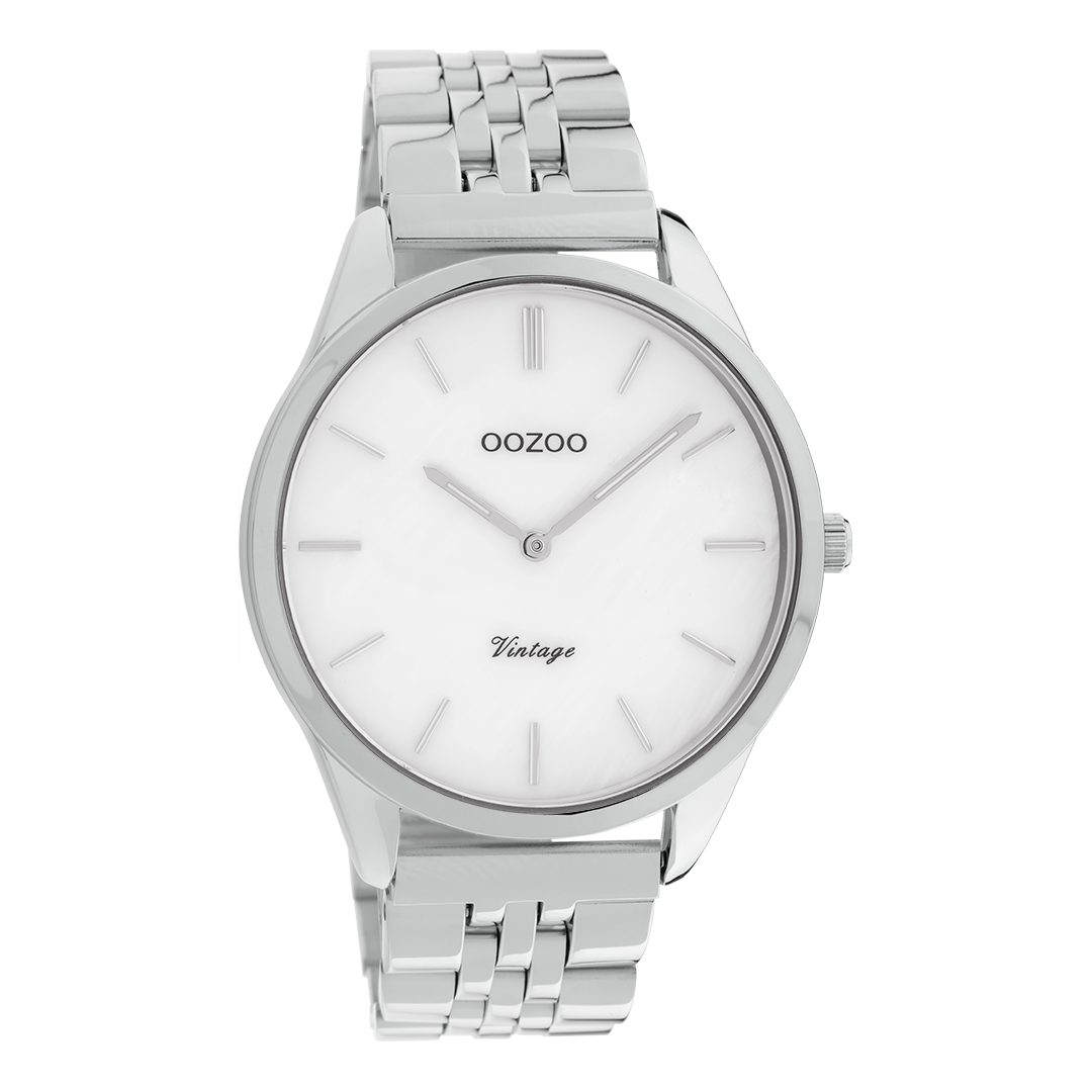The classic look stays key in this trendy series and therefore, this round OOZOO vintage design with a playful wink is the season must-have! This unisex watch is the perfect combination of fashion and comfort with its 38 mm silver coloured metal watch case and white with mother-of-pearl dial. The silver coloured stainless steel bracelet makes this watch a trendy accessory, which you can wear every day. The dial has silver coloured stripes digits and matching hands. The C9980 adds the sparkle to your outfit. The mineral glass lays in a 6,9 mm slim metal watch case with IP-plating. This design has a stainless steel backplate and is nickel safe. This watch has a 2 Japanese movement and is covered by a 2 year warranty (see section 3 of our Refund, shipping & warranty policy).