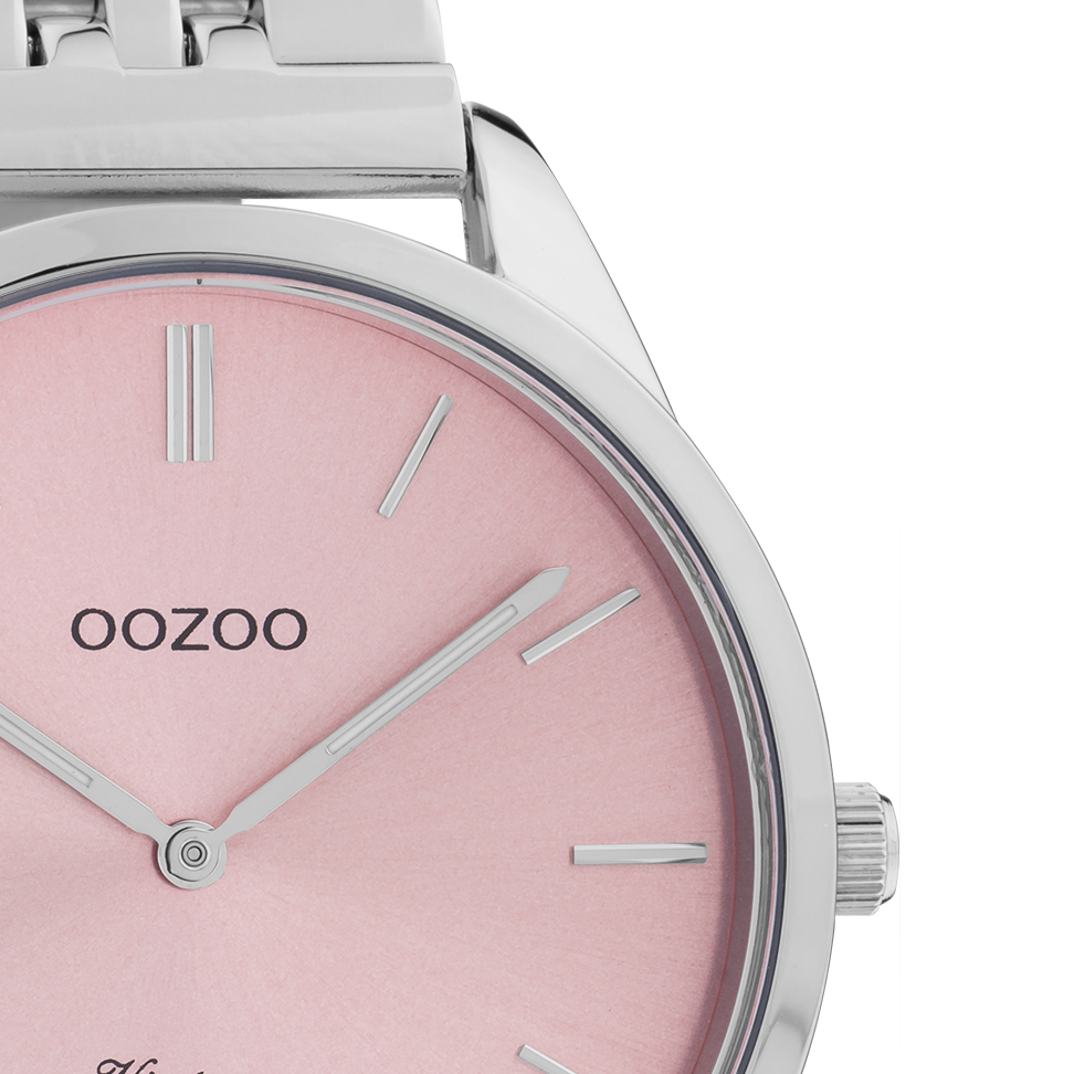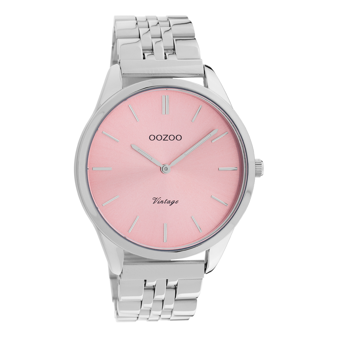 The classic look stays key in this trendy series and therefore, this round OOZOO vintage design with a playful wink is the season must-have! This unisex watch is the perfect combination of fashion and comfort with its 38 mm silver coloured metal watch case and pink sunray dial. The silver coloured stainless steel bracelet makes this watch a trendy accessory, which you can wear every day. The dial has silver coloured stripes digits and matching hands. The C9982 adds the sparkle to your outfit. The mineral glass lays in a 6,9 mm slim metal watch case with IP-plating. This design has a stainless steel backplate and is nickel safe. This watch has a 2 Japanese movement and is covered by a 2 year warranty (see section 3 of our Refund, shipping & warranty policy).