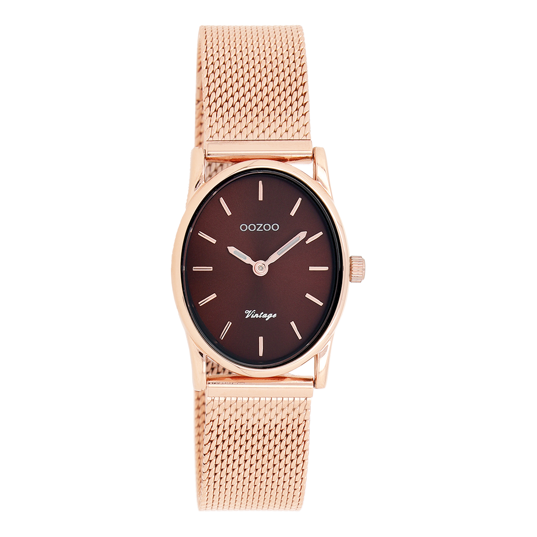 Sophistication and elegance are two elements of our beautiful OOZOO Vintage Classics. This classic oval design with a contemporary twist is something for everyone. This ladies watch is the perfect combination of comfort and fashion with its 28x22.5 mm rose coloured metal watch case and brown sunray dial. The rose coloured metal mesh bracelet makes this watch an all-time classic which you can wear with every occasion. The dial has rose coloured stripes digits and matching hands. The C10968 is a must have for your every-wear. The mineral glass lays in a 6,9 mm slim metal watch case with IP-plating. This design has a stainless steel backplate and is nickel safe. This watch has a 2ATM Japanese movement and is covered by a 2 year warranty (see section 3 of our Refund, shipping & warranty policy).