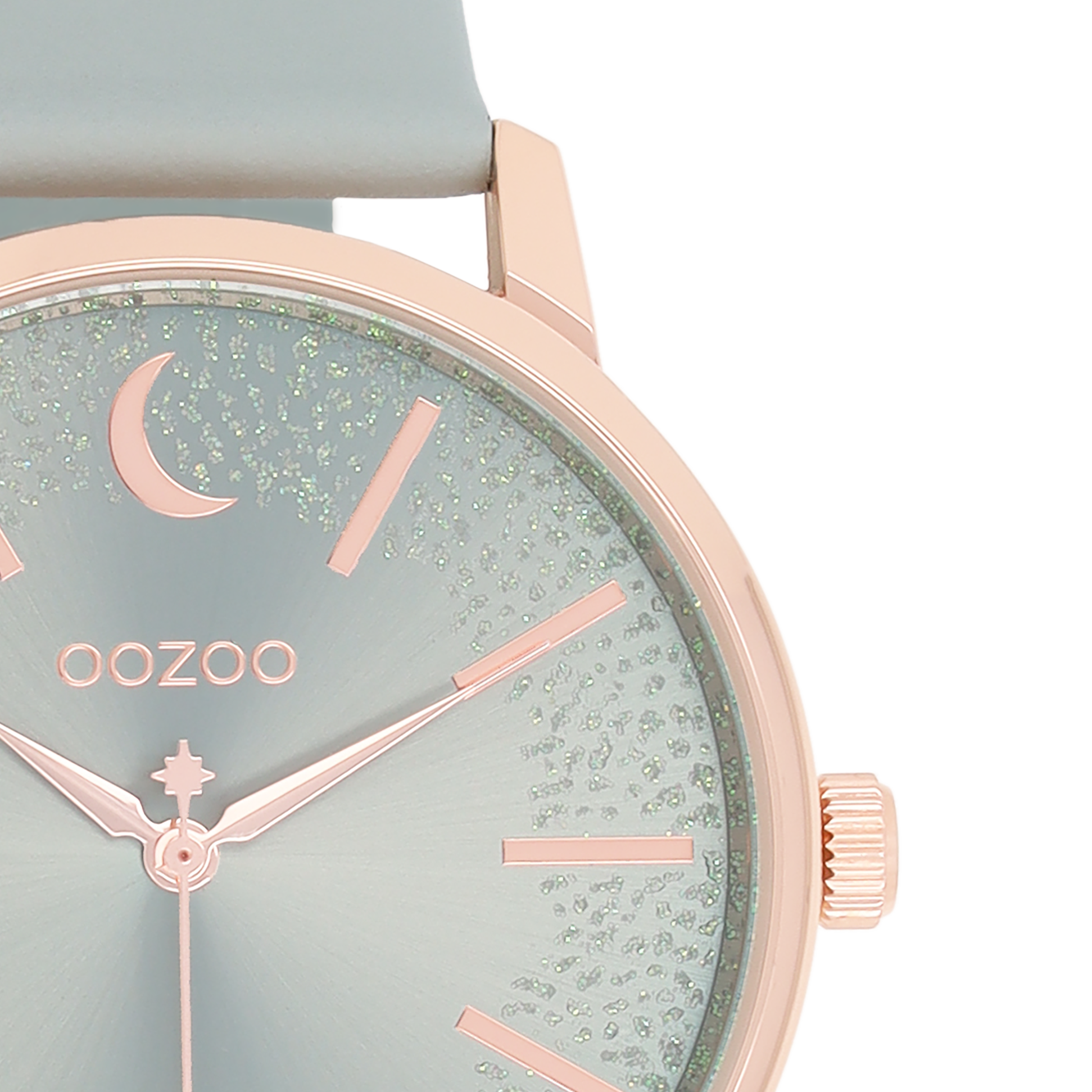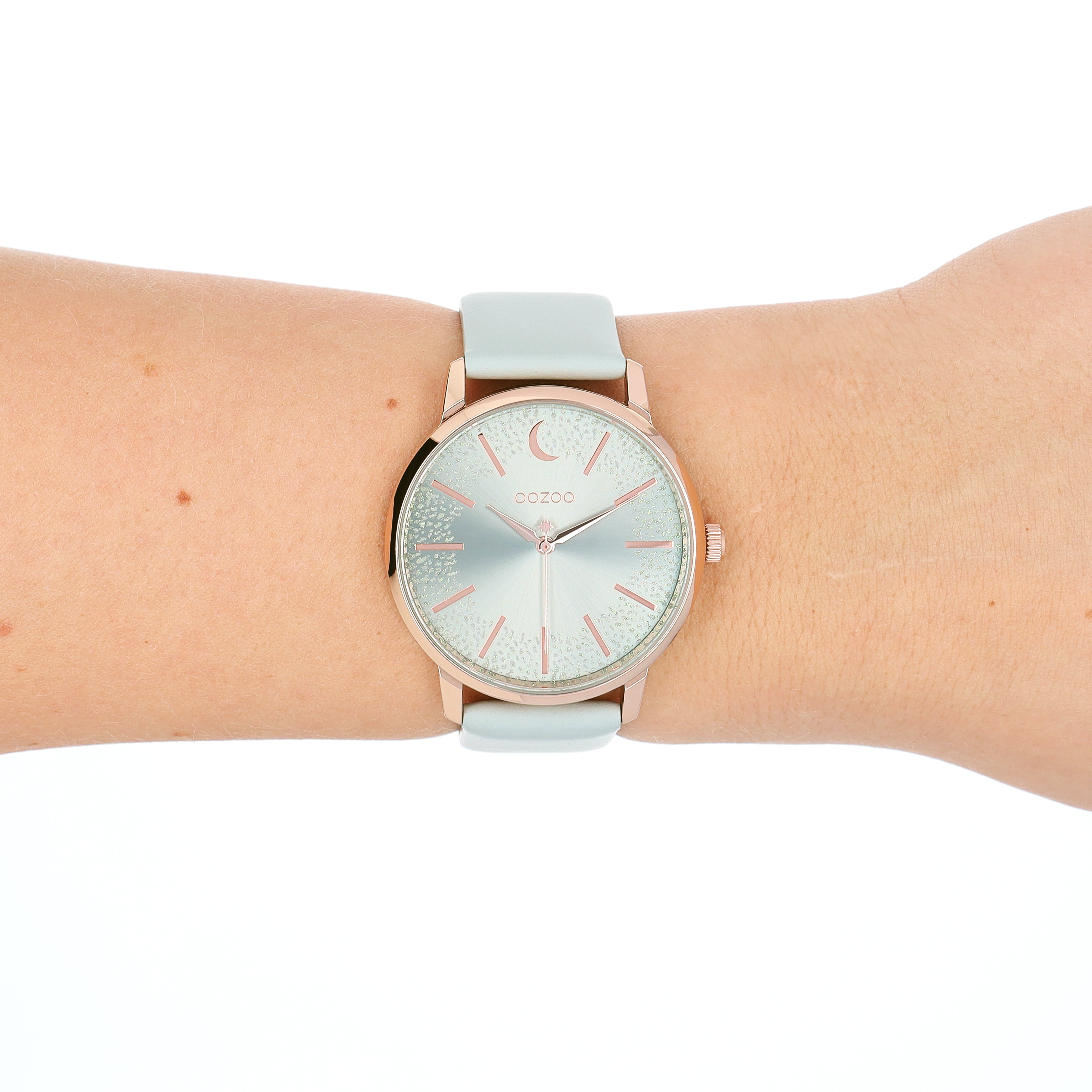Rose gold coloured OOZOO watch with stone grey leather strap - C11040