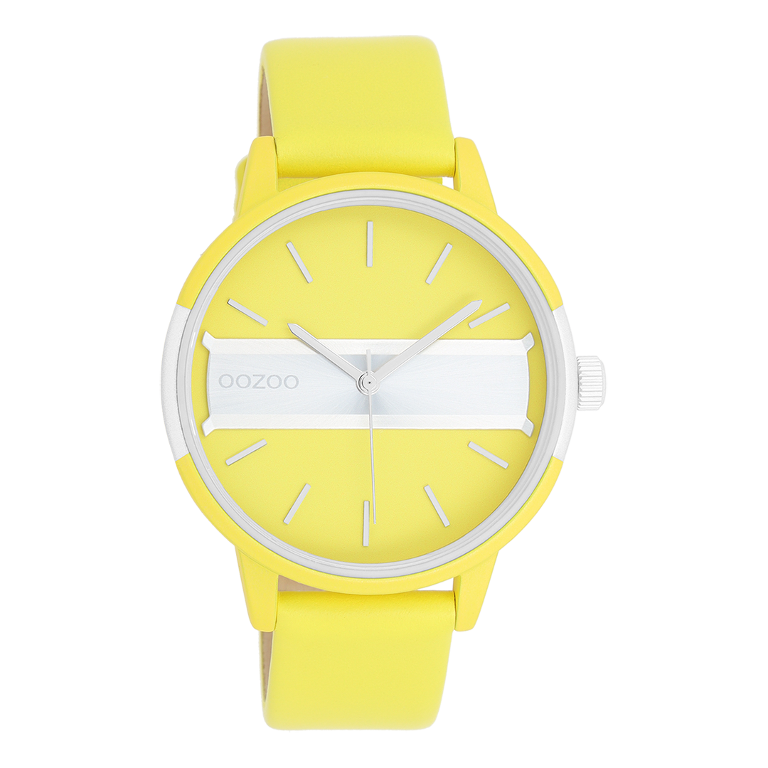 Stand out with this beautiful round unisex design from the trendy OOZOO Timepieces collection. The C11191 has a neon yellow leather strap and 42 mm neon yellow/gold coloured matte watch case. You are making quite the fashion statement with this neon yellow/gold coloured dial, gold coloured stripes digits and matching hands. This essential watch for your wardrobe has a mineral glass, stainless steel backplate and is nickel safe. This watch has a 2ATM Japanese movement and is covered by a 2 year warranty (see section 3 of our Refund, shipping & warranty policy).