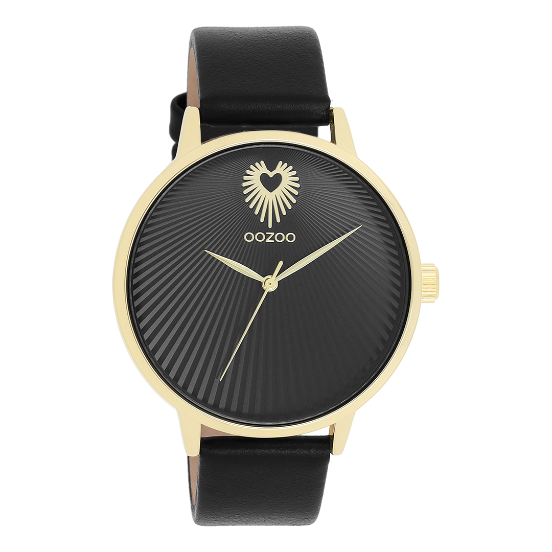 Stand out with this beautiful round ladies design from the trendy OOZOO Timepieces collection. The C11242 has a black leather strap and 42 mm gold coloured metal watch case. You are making quite the fashion statement with this black heart lined dial, no digits and gold coloured hands. This essential watch for your wardrobe has a mineral glass, stainless steel backplate and is nickel safe. This watch has a 2ATM Japanese movement and is covered by a 2 year warranty (see section 3 of our Refund, shipping & warranty policy).