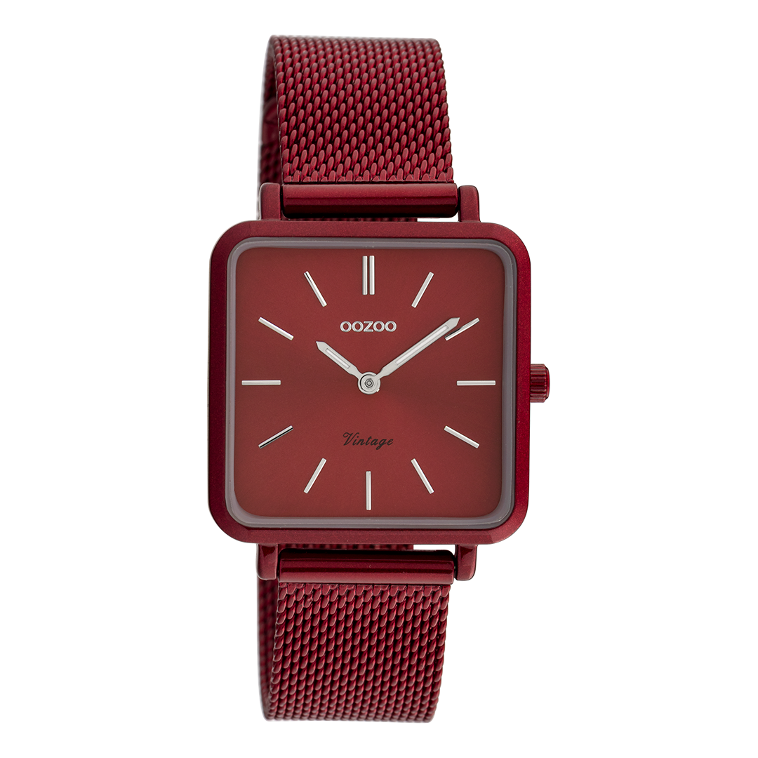The classic look stays key in this trendy series and therefore, this square OOZOO vintage design with a playful wink is the season must-have! This unisex watch is the perfect combination of fashion and comfort with its 29 mm burgundy metal watch case and burgundy with sunray dial. The burgundy metal mesh bracelet makes this watch a trendy accessory, which you can wear every day. The dial has silver coloured stripes digits and matching hands. The C20011 adds the sparkle to your outfit. The mineral glass lays in a 6,9 mm slim metal watch case with IP-plating. This design has a stainless steel backplate and is nickel safe. This watch has a 2 Japanese movement and is covered by a 2 year warranty (see section 3 of our Refund, shipping & warranty policy).
