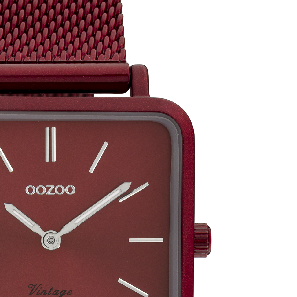 Burgundy OOZOO watch with metal mesh bracelet - C20011
