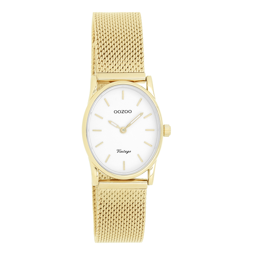 The classic look stays key in this trendy series and therefore, this oval OOZOO vintage design with a playful wink is the season must-have! This ladies watch is the perfect combination of fashion and comfort with its 28mm x 22.5 mm gold coloured metal watch case and white dial. The shiny gold coloured metal mesh bracelet makes this watch a trendy accessory, which you can wear every day. The dial has gold coloured stripes digits and gold coloured hands. The C20258 adds the sparkle to your outfit. The mineral glass lays in a 6,9 mm slim metal watch case with IP-plating. This design has a stainless steel backplate and is nickel safe. This watch has a 2ATM Japanese movement and is covered by a 2 year warranty (see section 3 of our Refund, shipping & warranty policy).