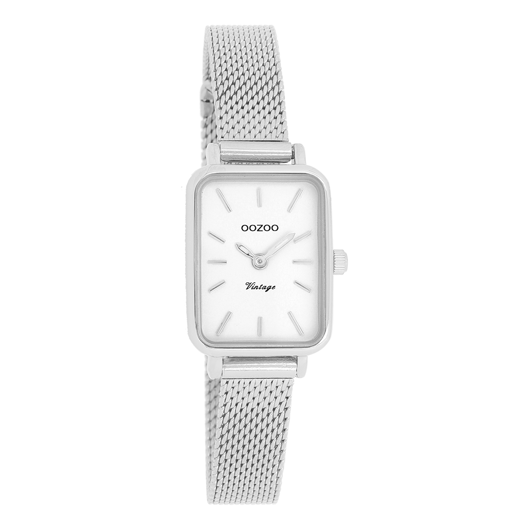 The classic look stays key in this trendy series and therefore, this rectangle OOZOO vintage design with a playful wink is the season must-have! This ladies watch is the perfect combination of fashion and comfort with its 26mm x 21 mm silver coloured metal watch case and white dial. The shiny silver coloured metal mesh bracelet makes this watch a trendy accessory, which you can wear every day. The dial has silver coloured stripes digits and silver coloured hands. The C20266 adds the sparkle to your outfit. The mineral glass lays in a 6,9 mm slim metal watch case with IP-plating. This design has a stainless steel backplate and is nickel safe. This watch has a 2ATM Japanese movement and is covered by a 2 year warranty (see section 3 of our Refund, shipping & warranty policy).