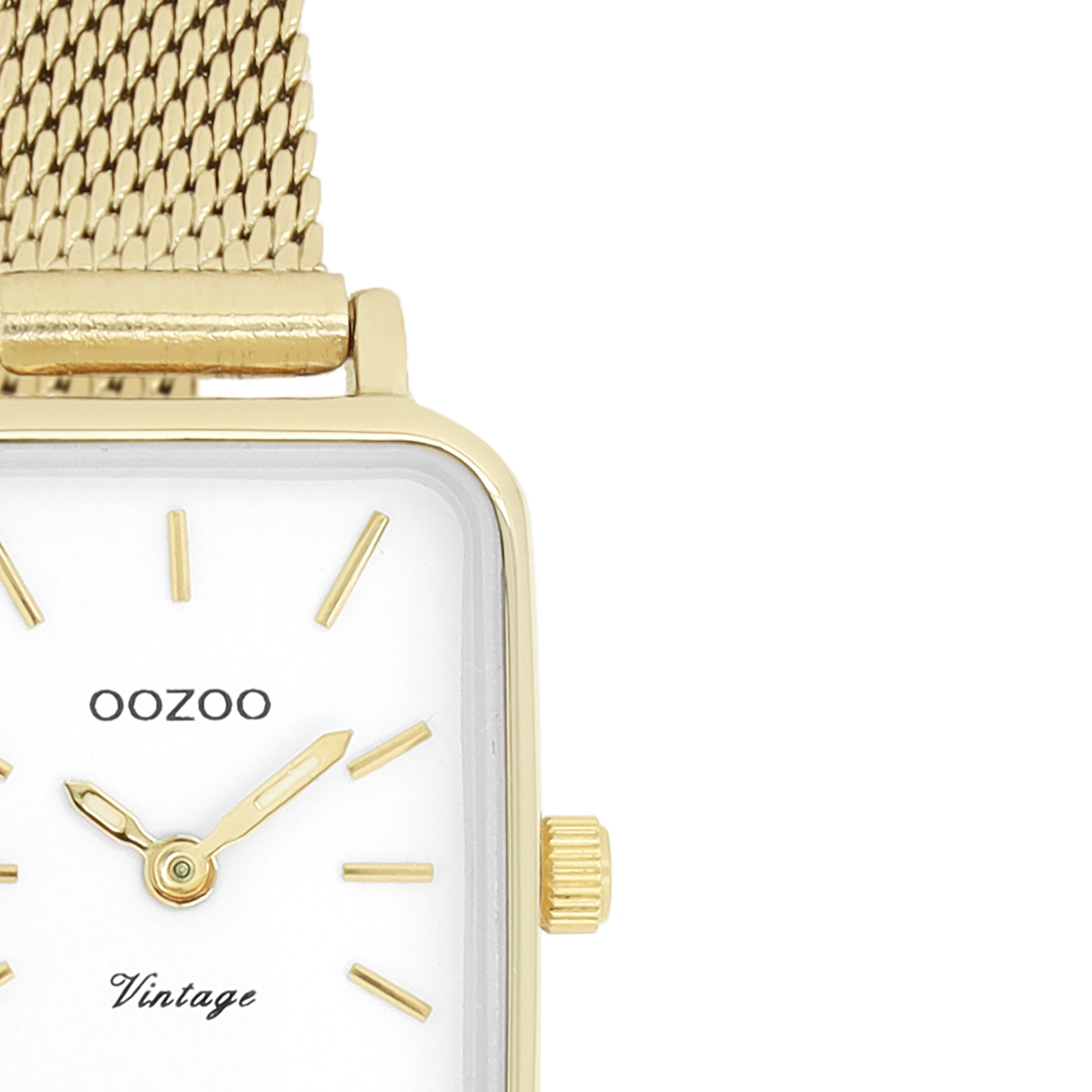 Sophistication and elegance are two elements of our beautiful OOZOO Vintage Classics. This classic rectangle design with a contemporary twist is something for everyone. This ladies watch is the perfect combination of comfort and fashion with its 26x21 mm gold coloured metal watch case and white dial. The shiny gold coloured metal mesh bracelet makes this watch an all-time classic which you can wear with every occasion. The dial has gold coloured stripes digits and gold coloured hands. The C20268 is a must have for your every-wear. The mineral glass lays in a 6,9 mm slim metal watch case with IP-plating. This design has a stainless steel backplate and is nickel safe. This watch has a 2 Japanese movement.