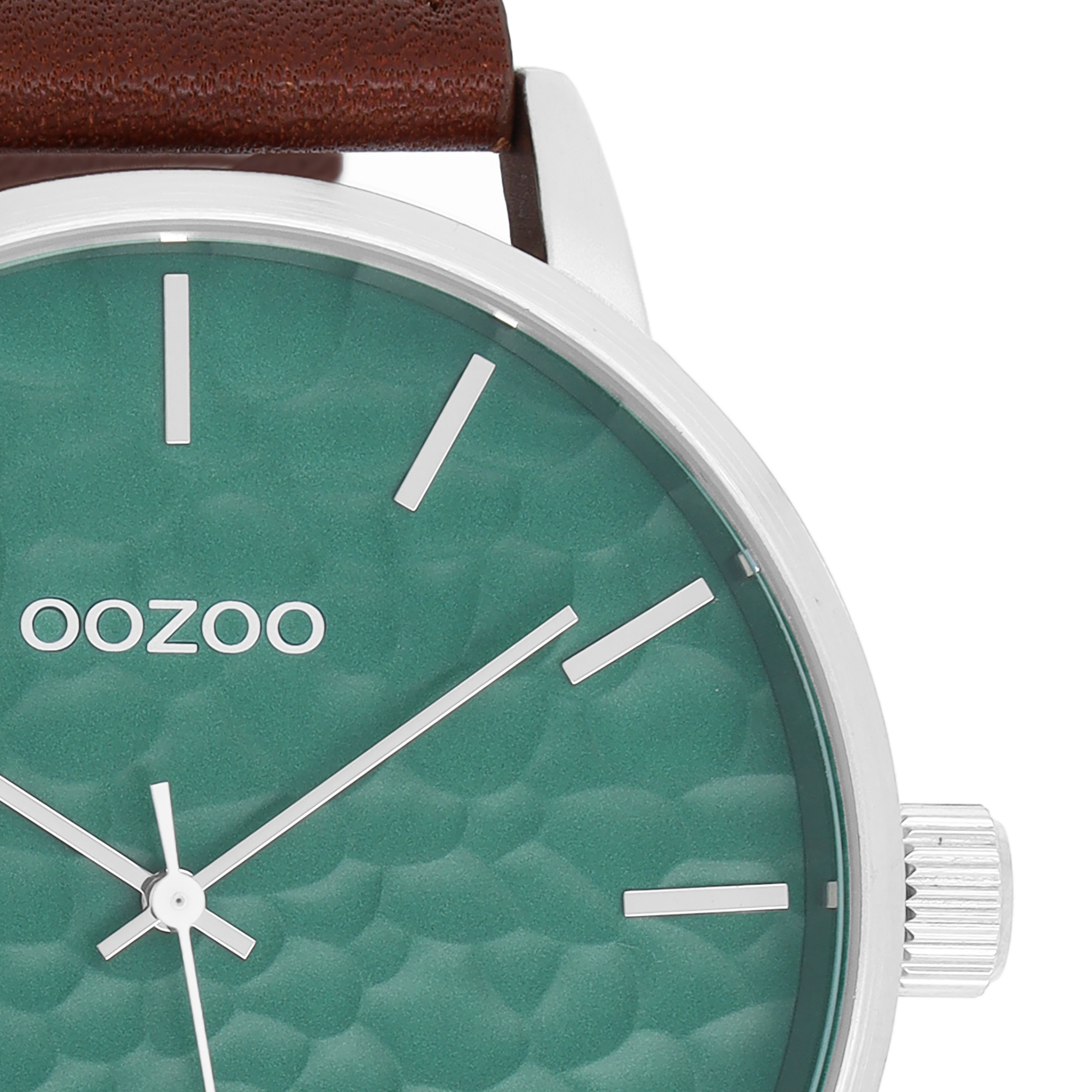 Silver coloured OOZOO watch with brown leather strap - C9441