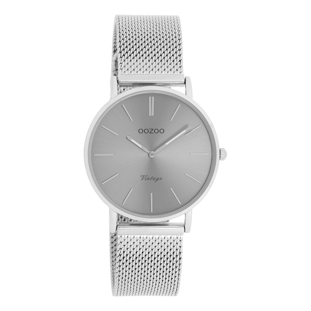 Sophistication and elegance are two elements of our beautiful OOZOO Vintage Classics. This classic round design with a contemporary twist is something for everyone. This unisex watch is the perfect combination of comfort and fashion with its 32 mm silver coloured metal watch case and titanium with sunray dial. The silver coloured metal mesh bracelet makes this watch an all-time classic which you can wear with every occasion. The dial has silver coloured stripes digits and matching hands. The C9939 is a must have for your every-wear. The mineral glass lays in a 6,9 mm slim metal watch case with IP-plating. This design has a stainless steel backplate and is nickel safe. This watch has a 2ATM Japanese movement and is covered by a 2 year warranty (see section 3 of our Refund, shipping & warranty policy).