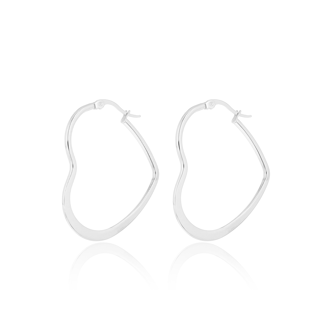 Silver coloured hoop earrings with heart shape
